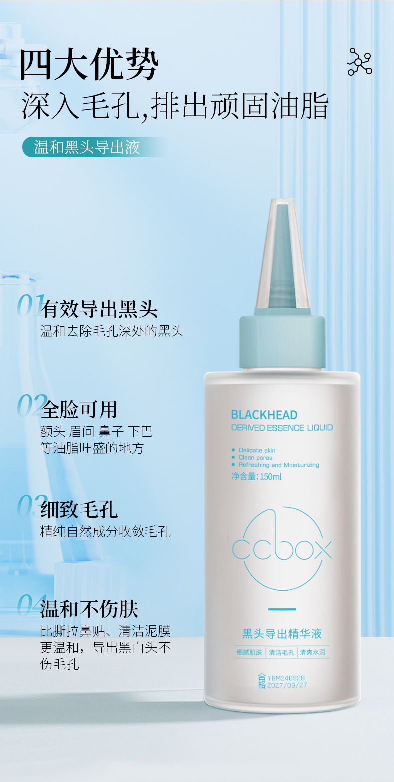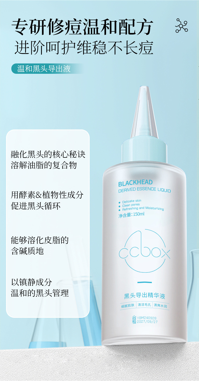 ccbox 黒ずみエクスポートリキッドは、黒ずみ、白ニキビ、閉じた口を刺激せず、優しく洗浄し、キューティクルエッセンスを柔らかくします。