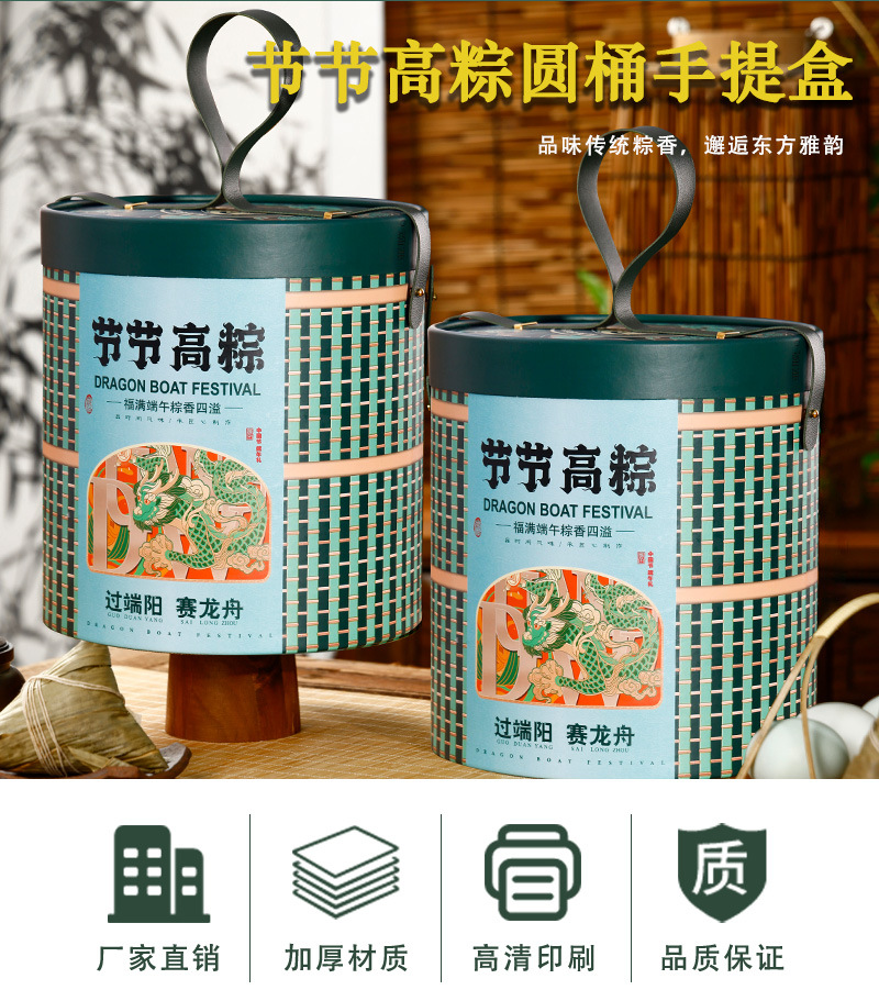 新しい端午の節句ちまき礼箱創意ビジネスプレゼント抱っこ桶円形手提げ状元ちまきプレゼント包装箱