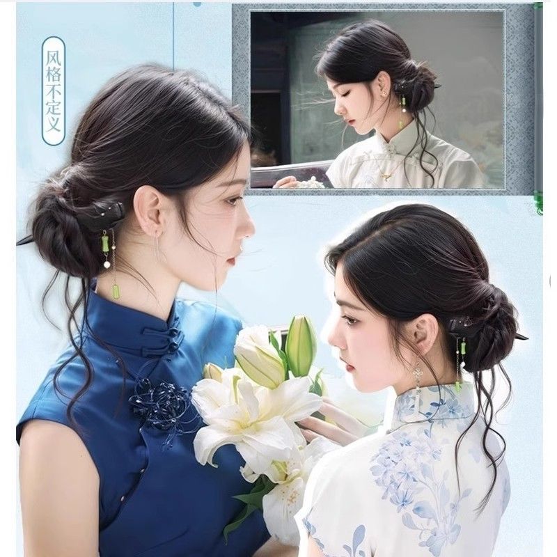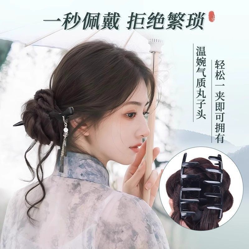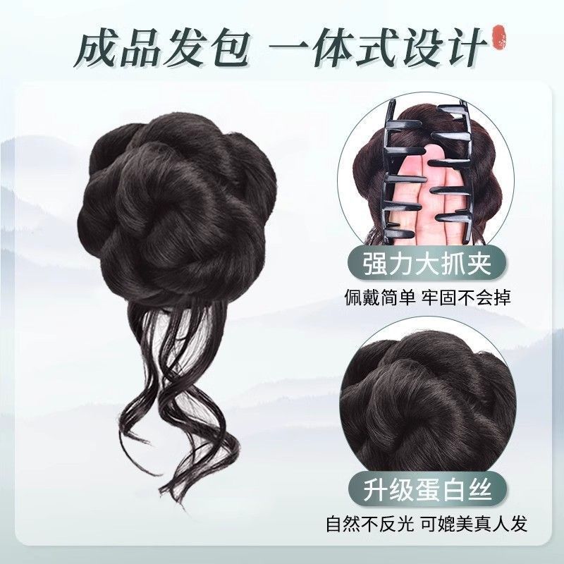 假发新中式抓夹女低扎古风汉服假发花苞头盘发神器丸子头假发发包