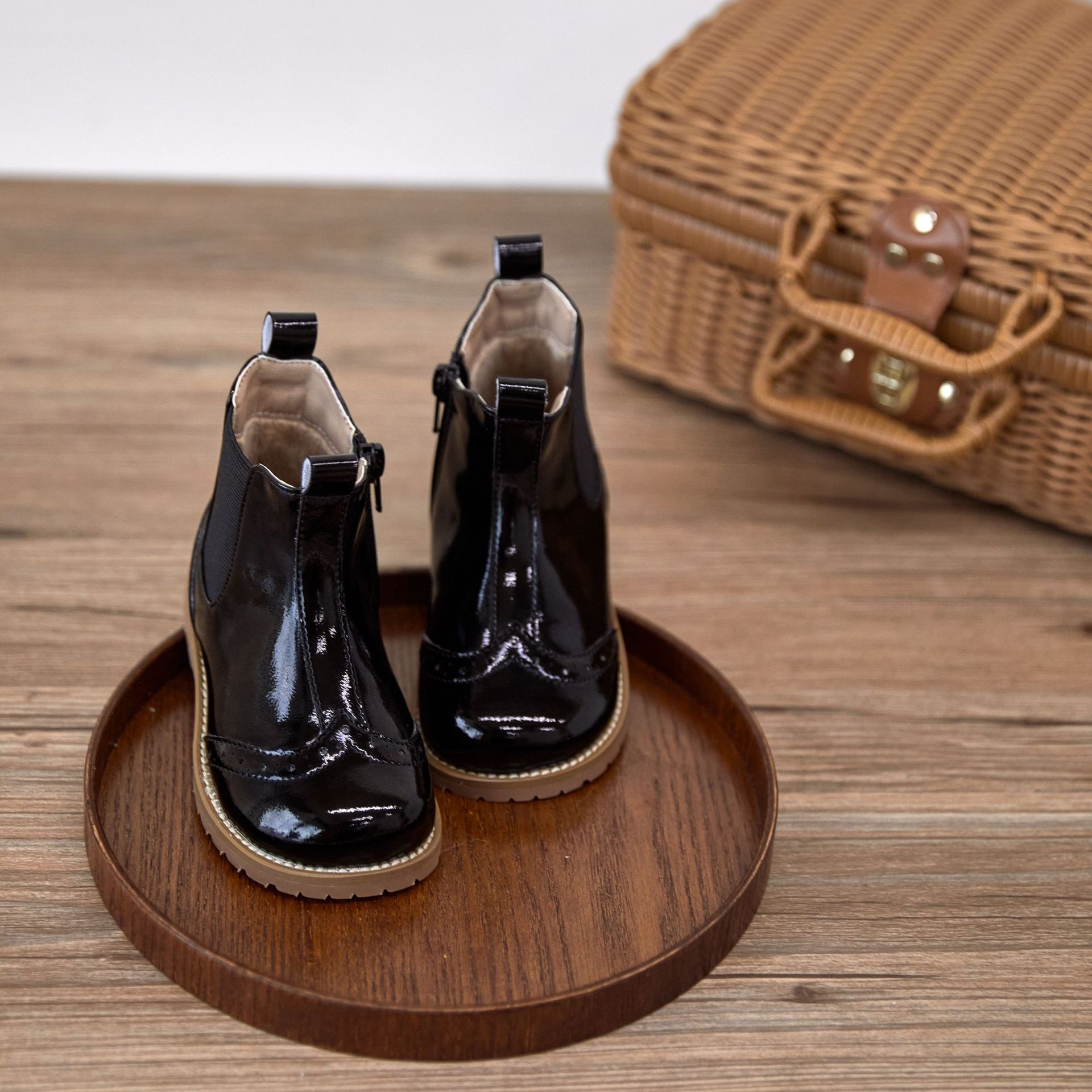 2024秋冬新作br 2480衝突色英倫子供靴透かし彫り彫刻レトロ側マジックテープ革靴
