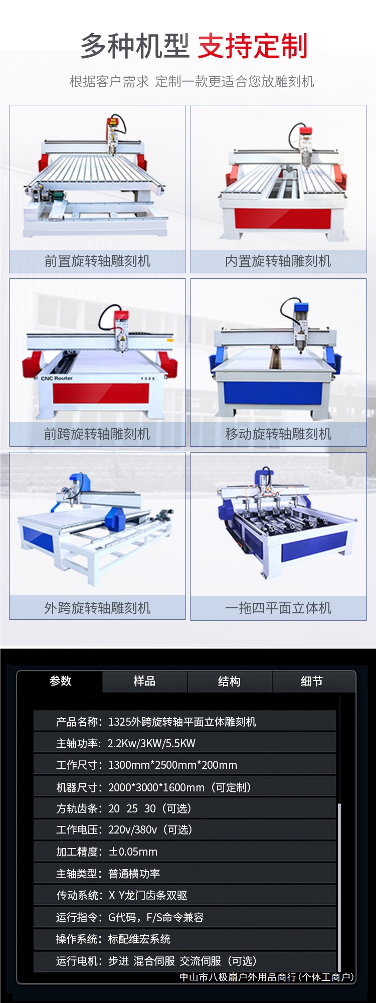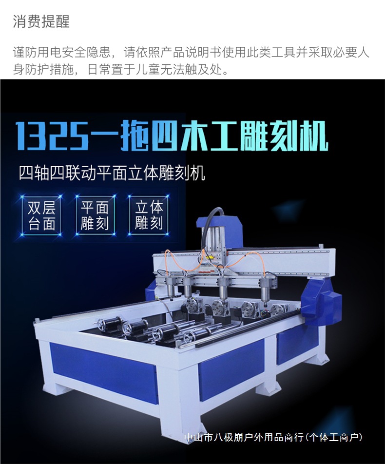 1325 1対4木工彫刻機 CNC全自動3D立体平面一体型マシン 4軸円形彫刻 8極