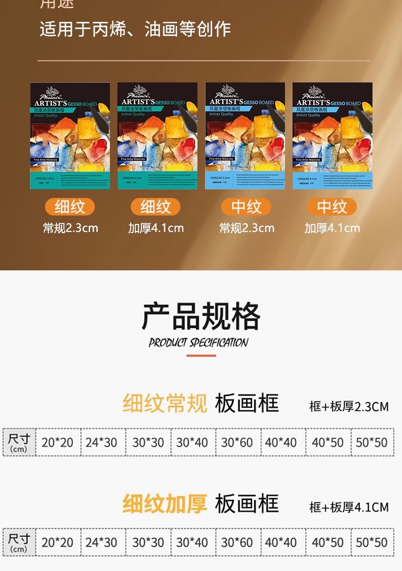 フェニックスコーティングボード額縁レギュラーモデル中粒厚みのあるコーティングされた空白のインナーフレームアクリル油絵フレーム