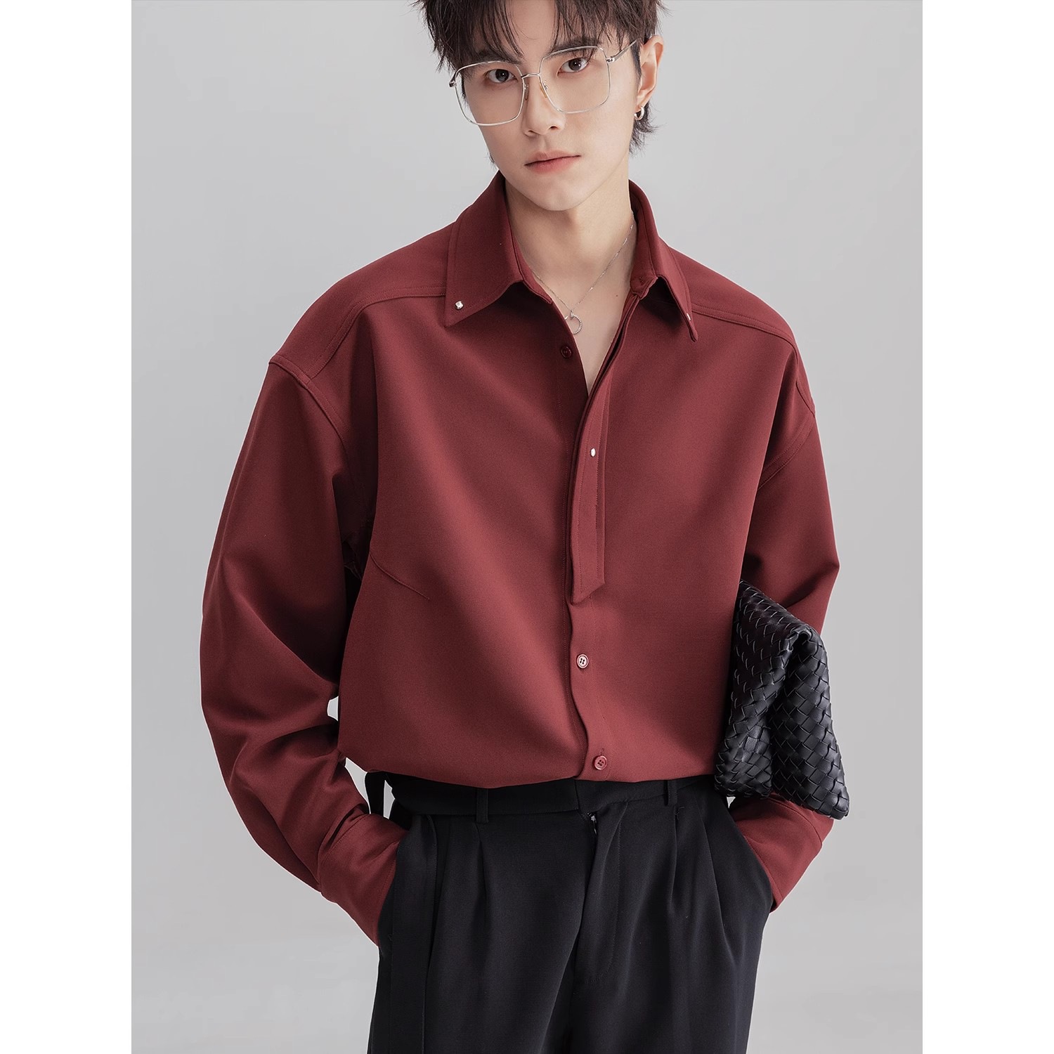 クロスボーダーシャツメンズ長袖春秋韓国ファッションブランドゆったり万能無地カジュアルラペルシャツメンズファッション
