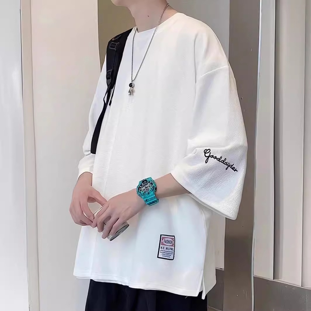 七分袖男tシャツ夏2025年新作ファッショントレンドゆるい大きいサイズ思いやり重いポンド半袖上服