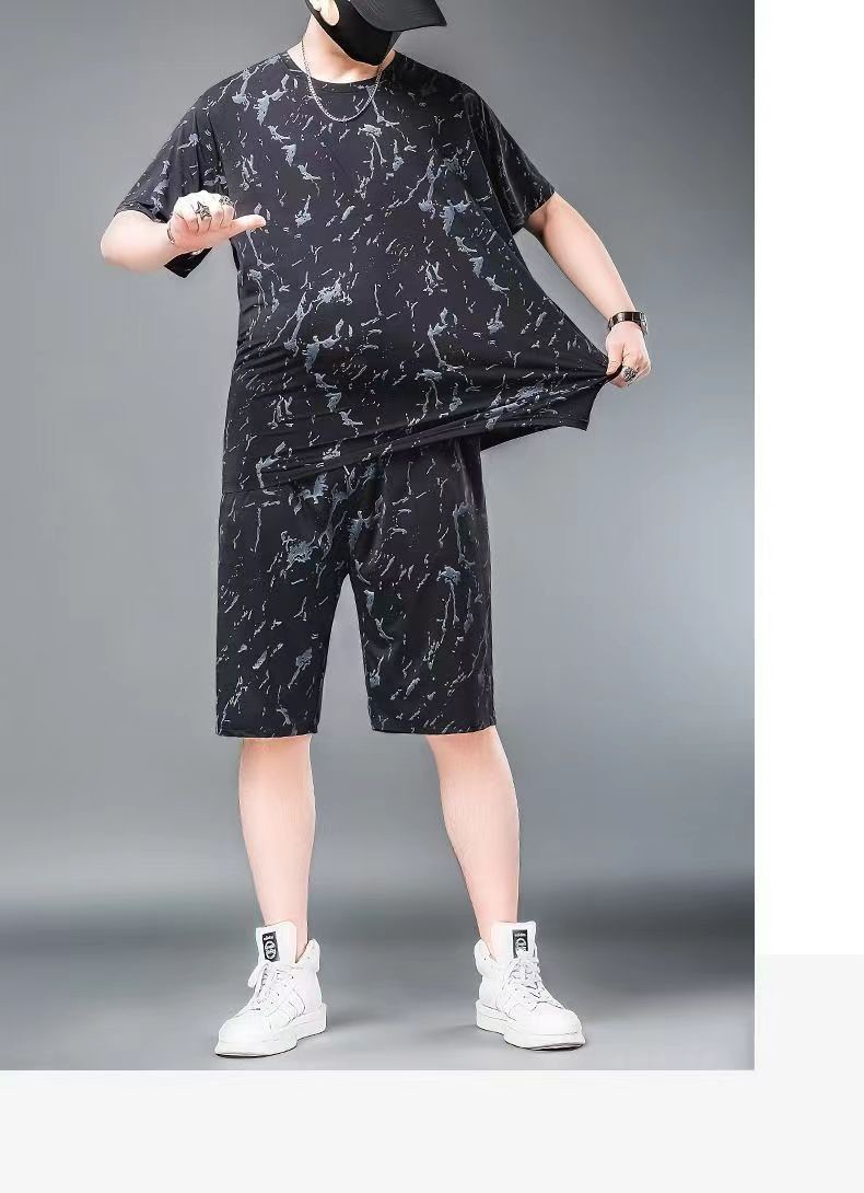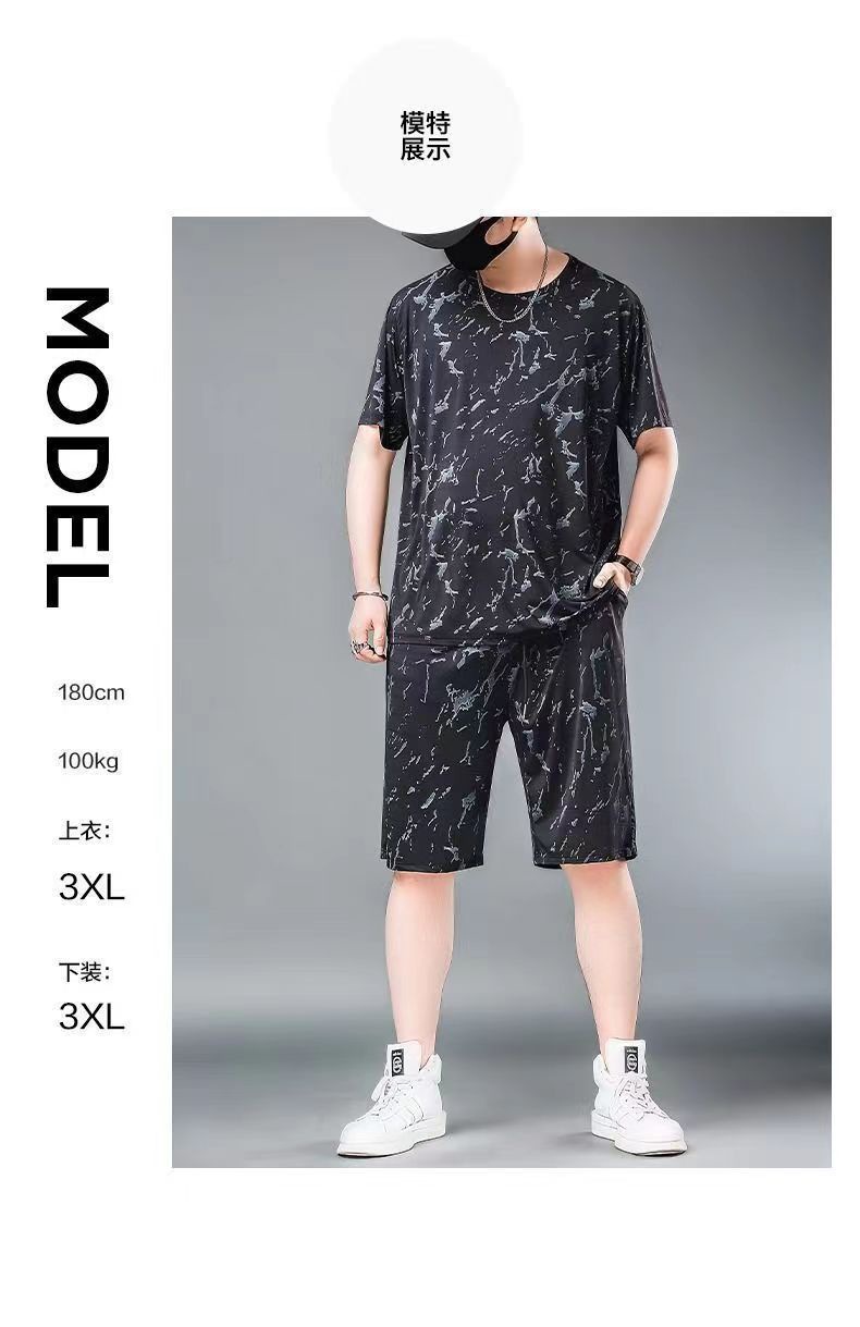 半袖ショーツツーピーススーツアイスシルクTシャツ大きいサイズメンズカジュアルスーツ通気性スポーツ夏服ゆったり
