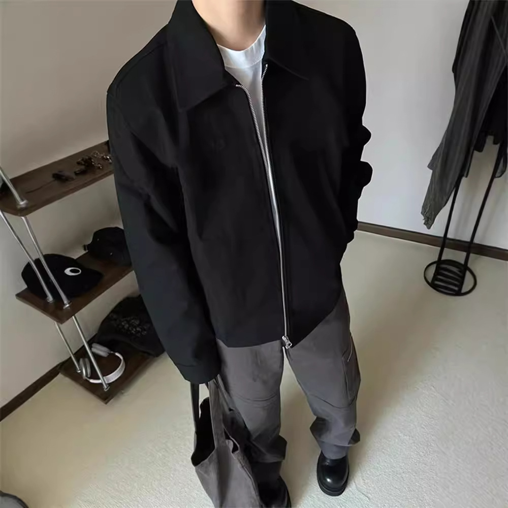 秋冬cleanfitショートコート男性用アメリカのレトロな野球服黒い肩の行政ジャケット