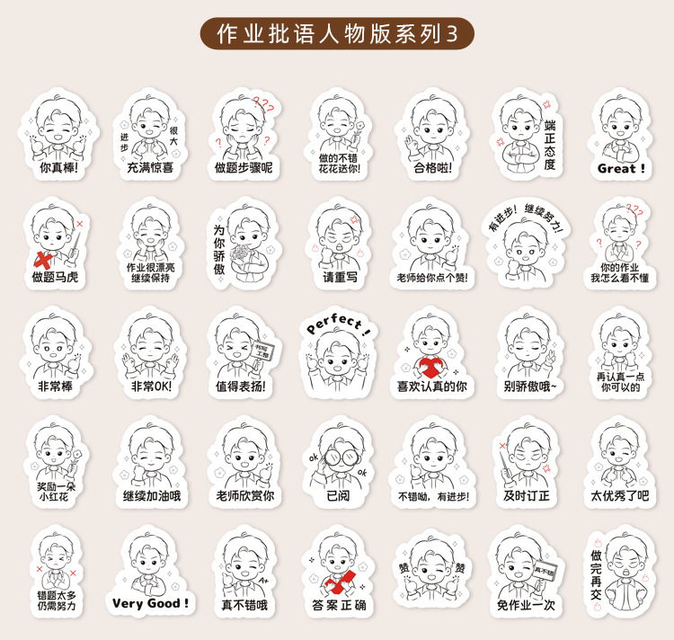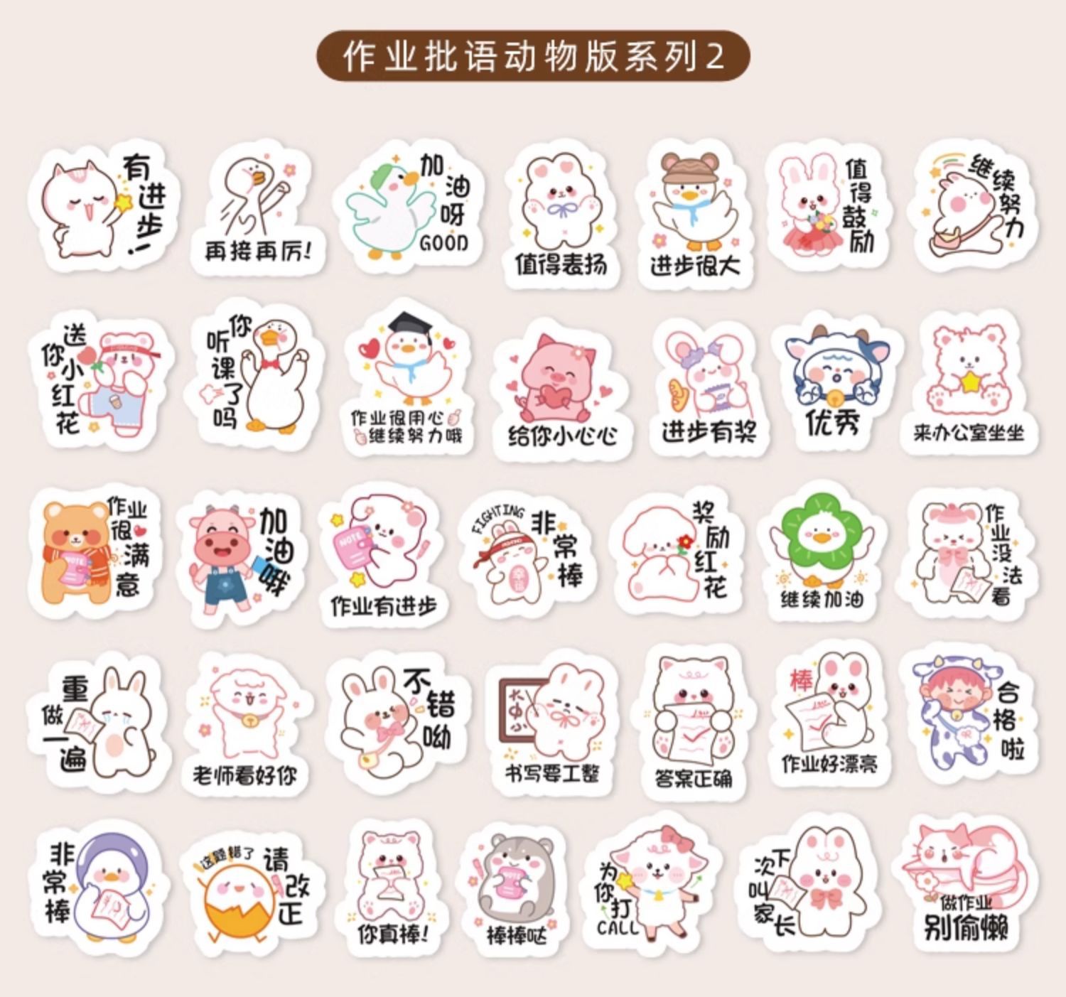 2025趣味作业批改萌趣表情包贴纸个性励志作业本评语小学生批评奖