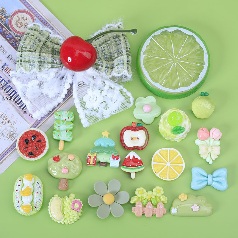 创意可爱仿真柠檬片蝴蝶结发夹diy奶油胶手机壳洞洞鞋树脂配件批