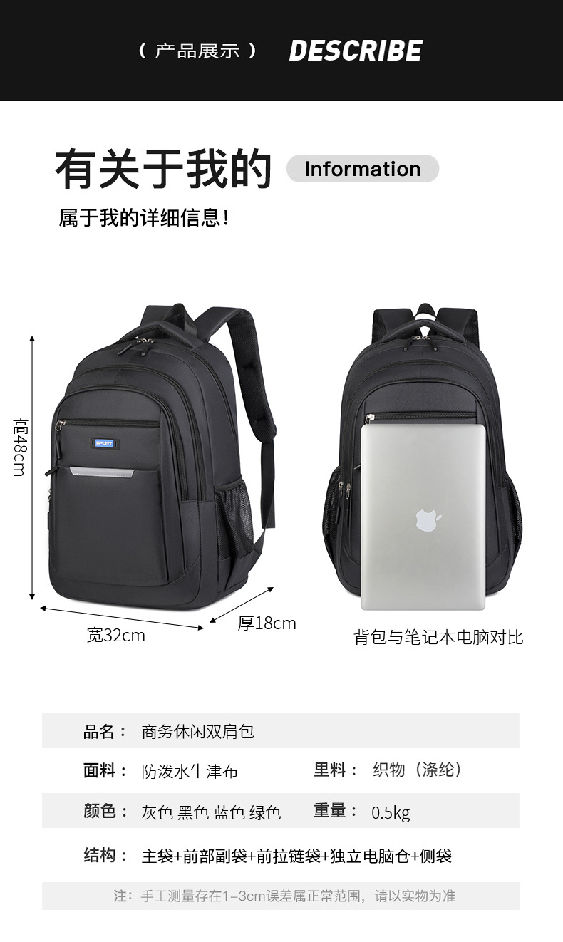 リュックサック男性リュックサック韓国版ファッション旅行レジャー女子中学生カバンシンプルファッションパソコンバッグ