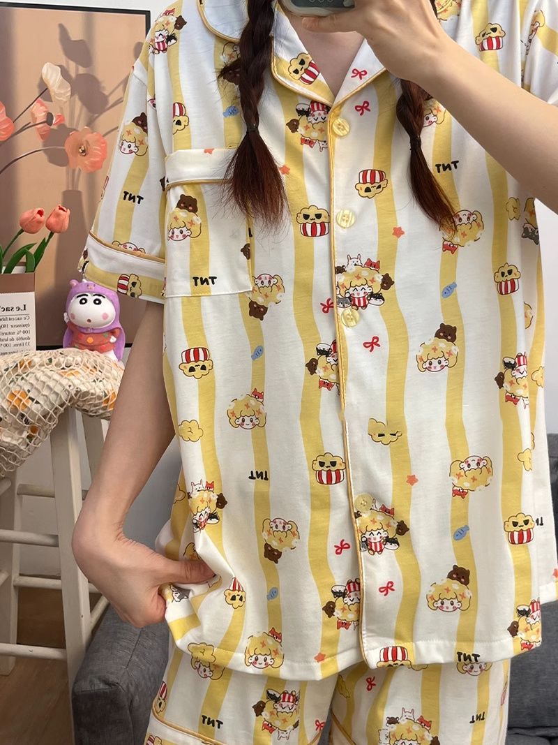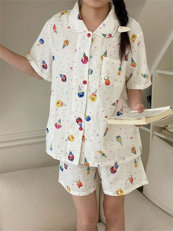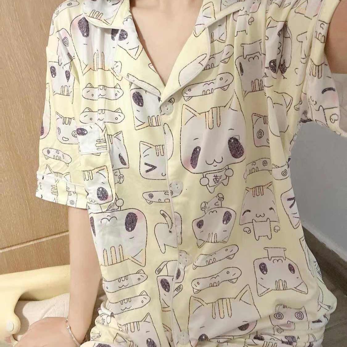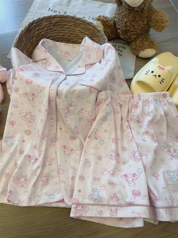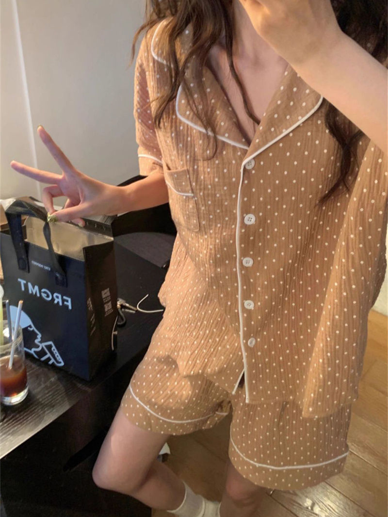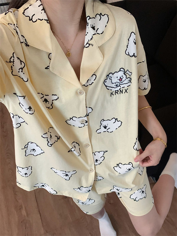 夏の新しいスタイルのクラウドコットンカーディガンラペル甘い女の子パジャマ半袖ショーツ女性のホームウェアセットクロスボーダー