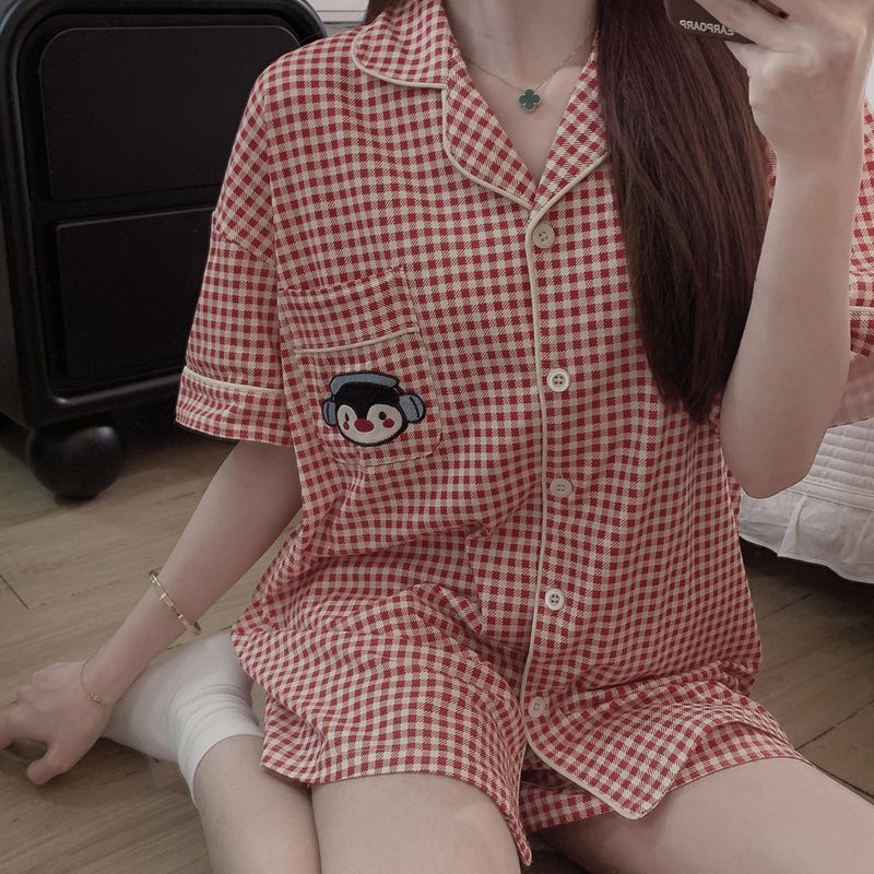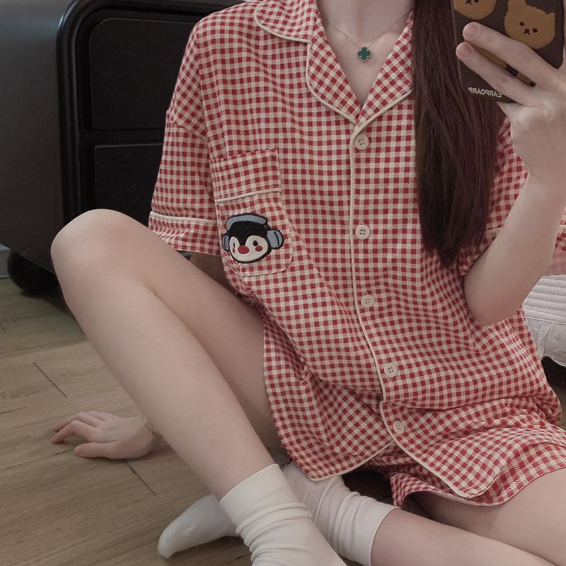 Ins韓国版格子パジャマ女性夏雲綿半袖スーツ家庭服小紅本起爆金クロスボーダー卸売り
