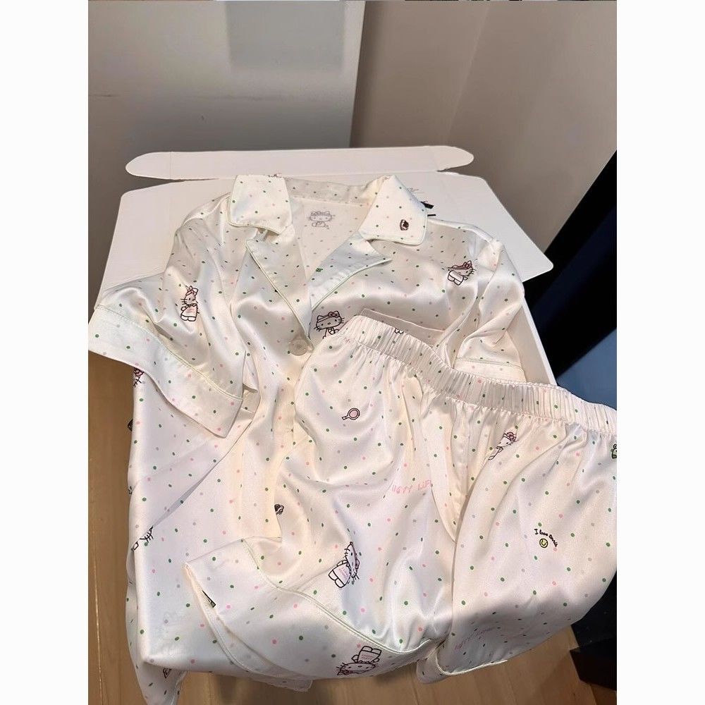 女性用漫画パジャマ 2025 新作夏アイスシルク半袖模擬シルクホームウェアセット キュートなスタイル