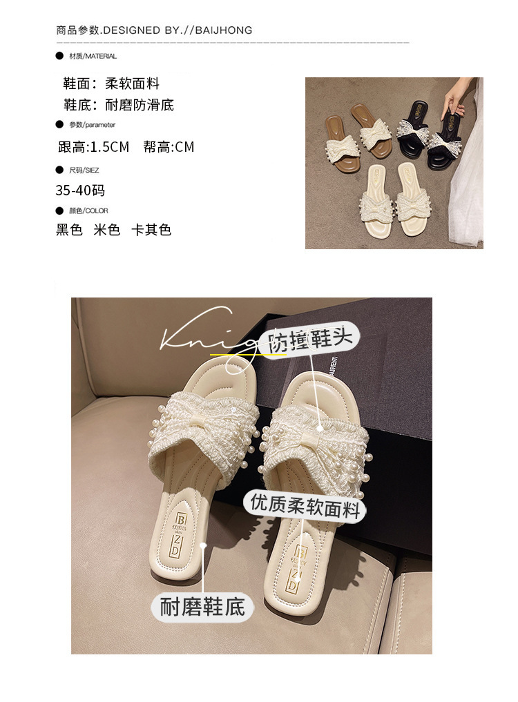 新中国式のフラットスリッパの女性2025夏の新型の方頭国風盤は半スリッパの外に一字の女性を着ています。