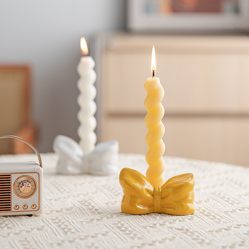 おしゃれな蝶結びキャンドルホルダー、クリエイティブな家の装飾、キャンドルベース、高級感のあるセラミックバターランプ、アロマセラピー