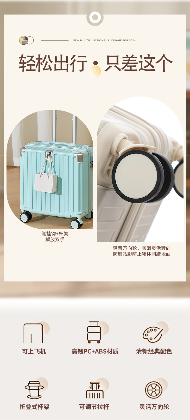 新型小型搭乗スーツケース女性18インチスーツケース男性多機能軽量耐久旅行暗号箱