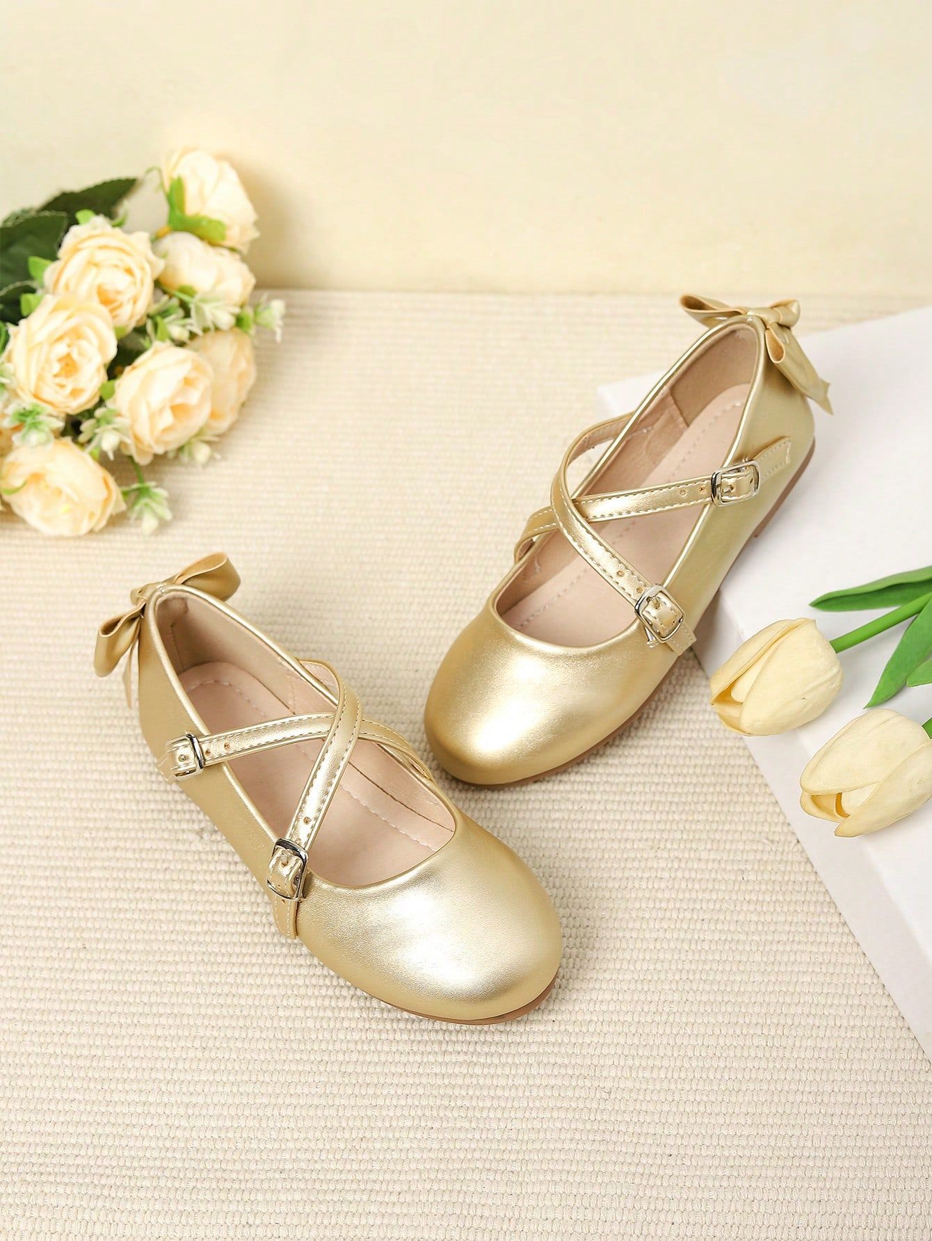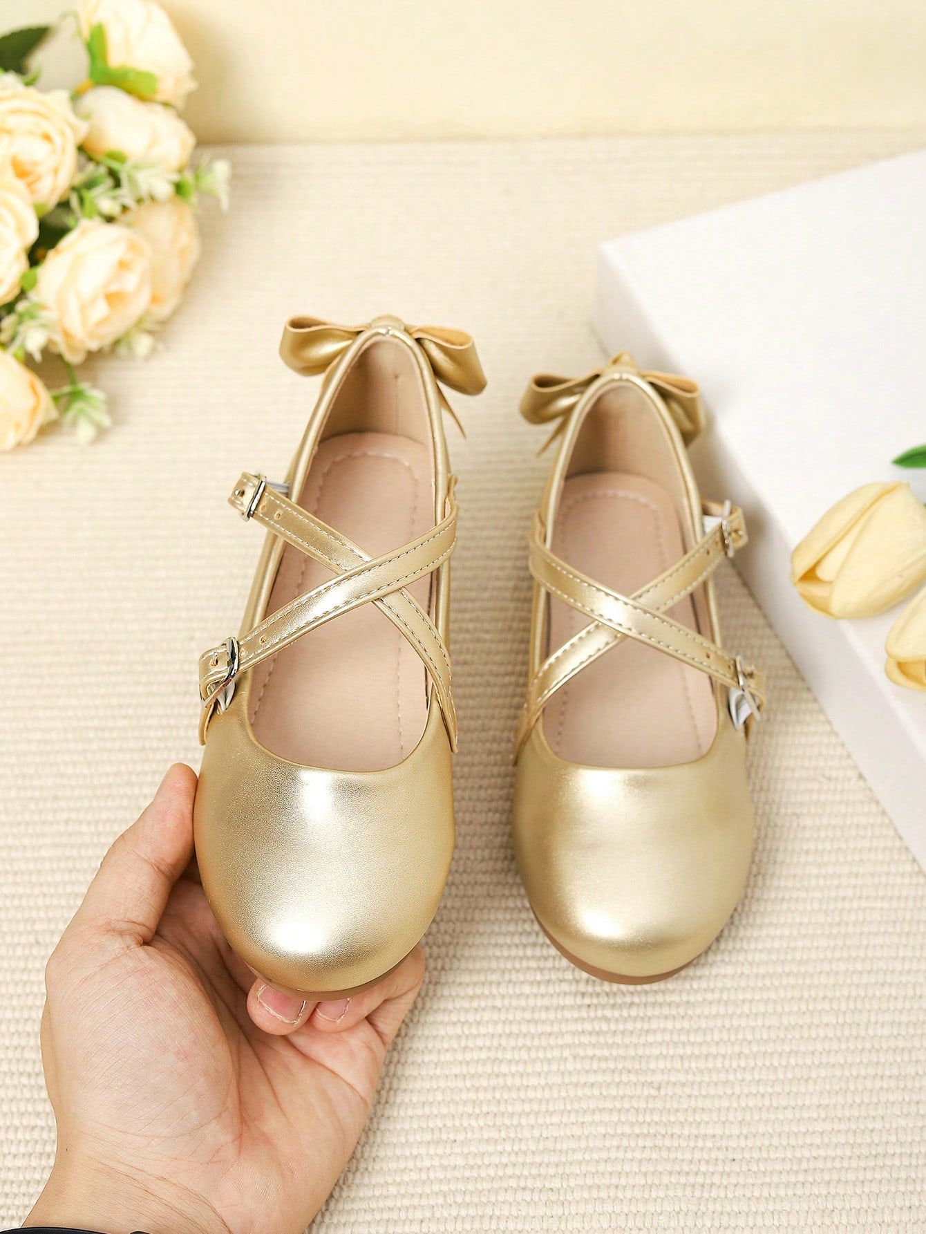 跨境外贸洋气蝴蝶结交叉扣带平底公主小皮鞋洋气软底防滑女童单鞋
