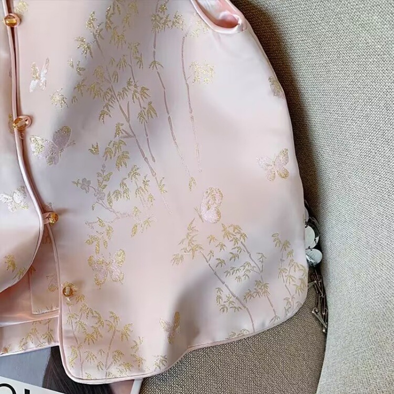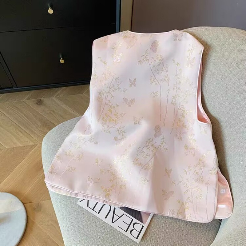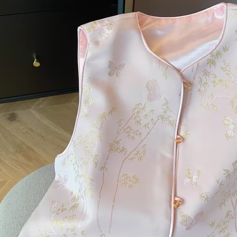 Cldm3986ピンクの新中国式蝶ジャカードベスト女性の高級感があります。