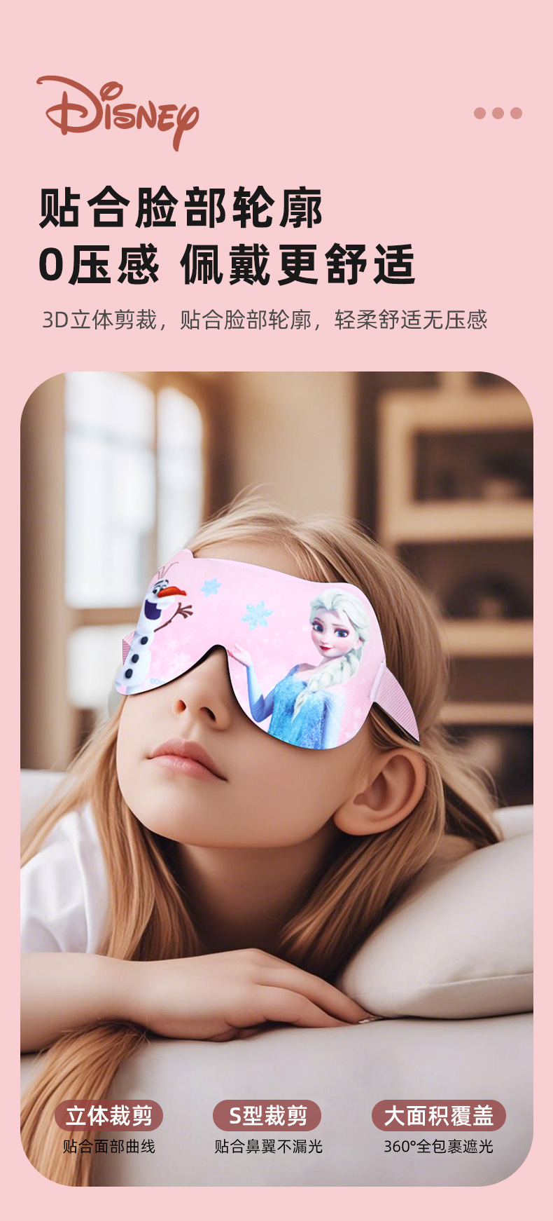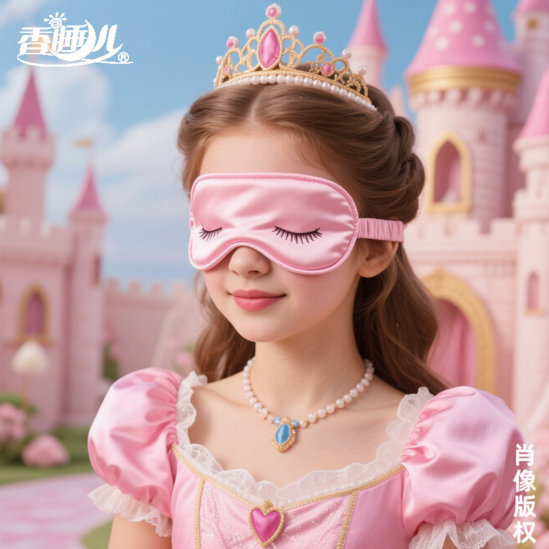 跨境冰丝睡眠眼罩儿童女公主桑蚕丝真丝学校午睡遮光3d眼罩