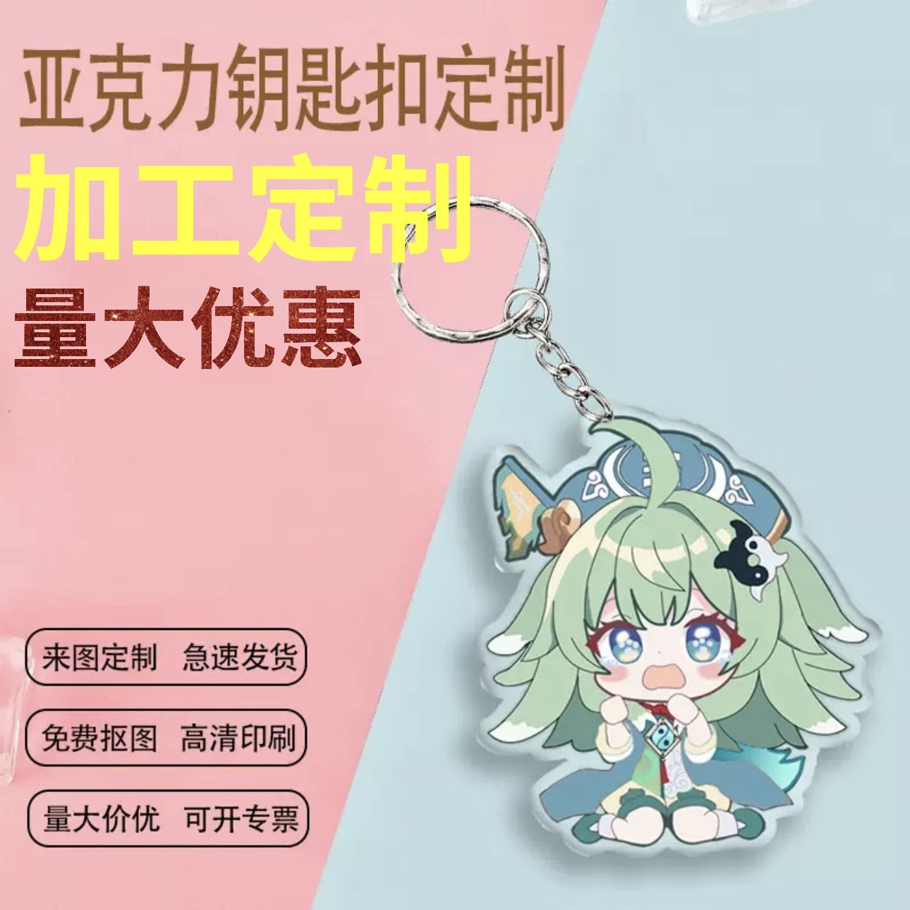 アクリルキーカスタムバックルアニメーション周辺機器IP印刷バッチ大有利二層複合CNC彫刻レーザー