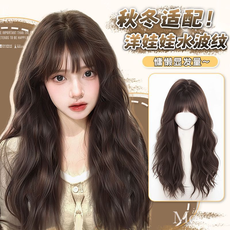 假发女全头套法式刘海长卷发秋冬羊毛卷水波纹自然蓬松整顶假发套