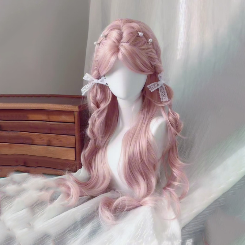 かつらの女性のプラチナのグラデーションの粉の雰囲気感の長いカールの全頭カバーの甘い自然なLolitaの全体のトップのシミュレーションの髪カバー