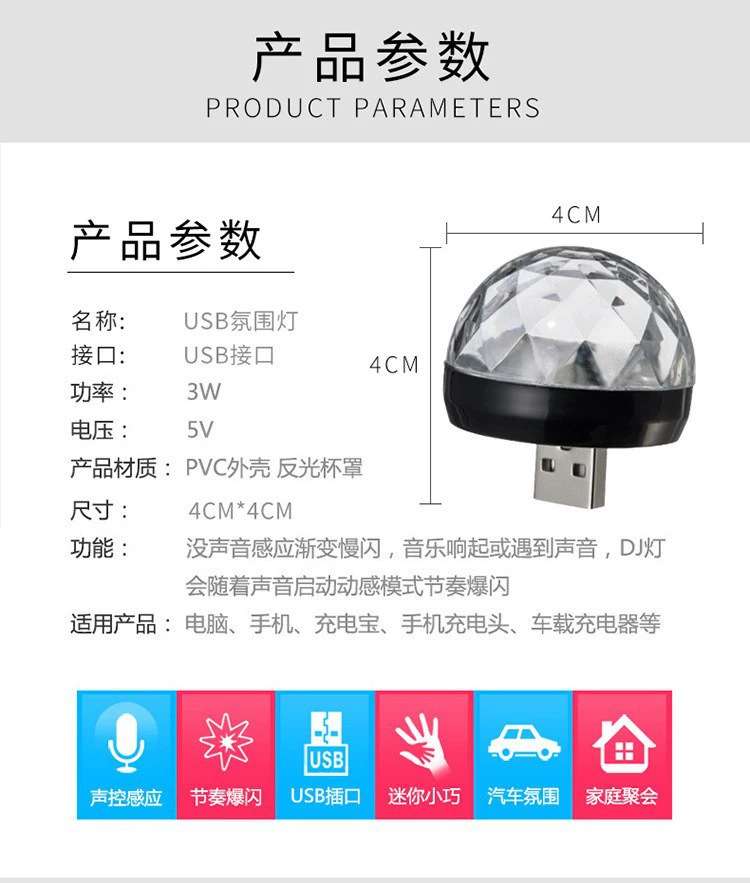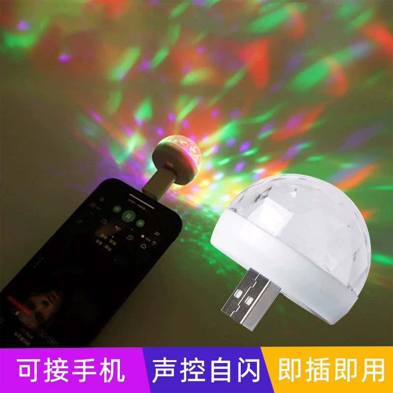 Usbディスコ小魔球七色水晶ミニパーティー携帯電話ステージライトrgb音控車載雰囲気djライト