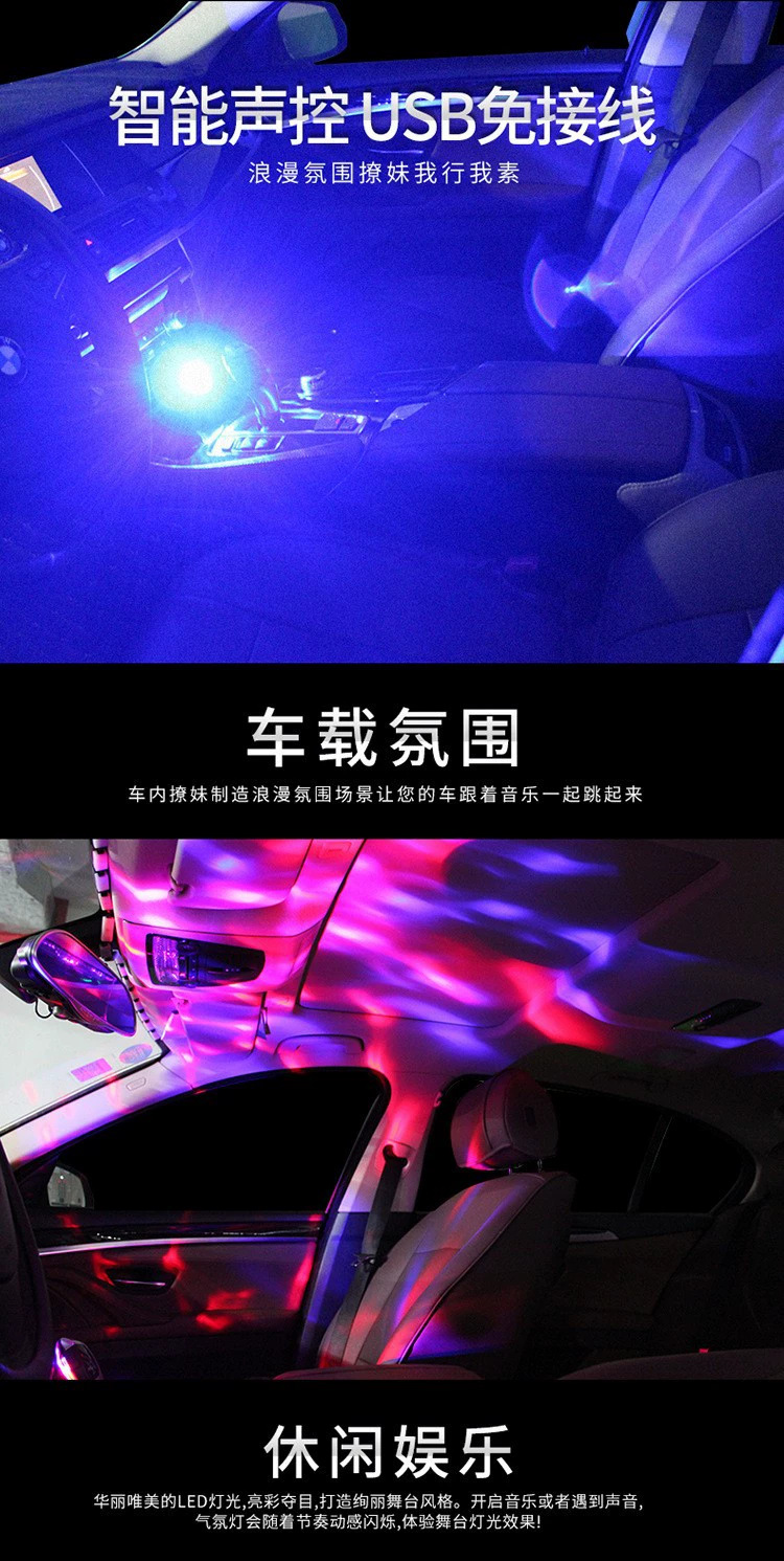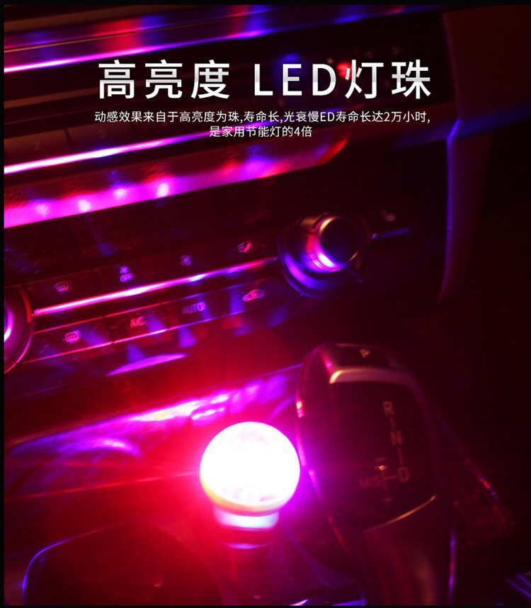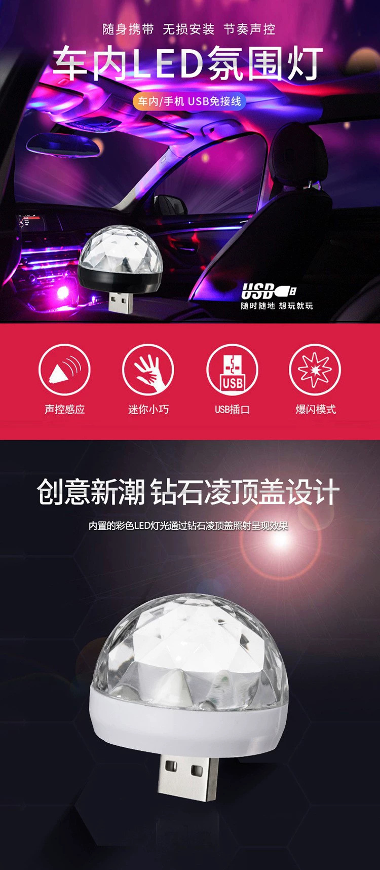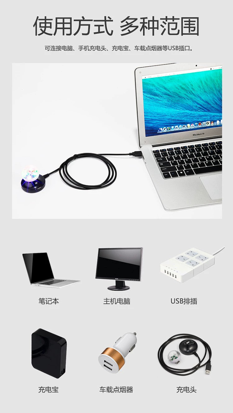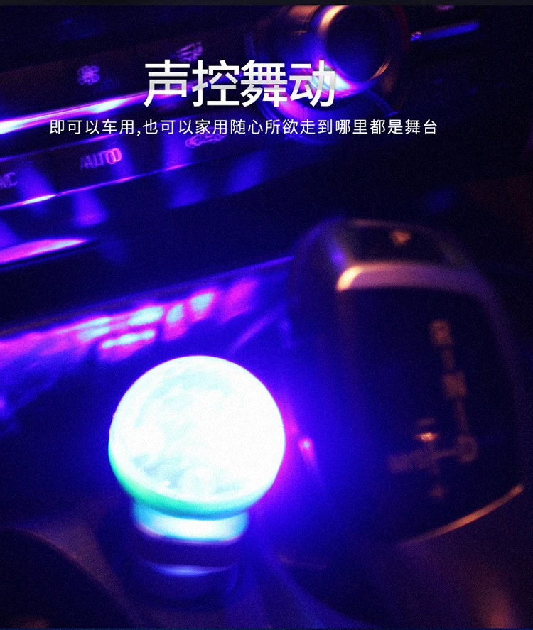携帯電話車載USB七彩RGB小魔球灯音控ミニ水晶KTV自動車雰囲気djステージスタンド