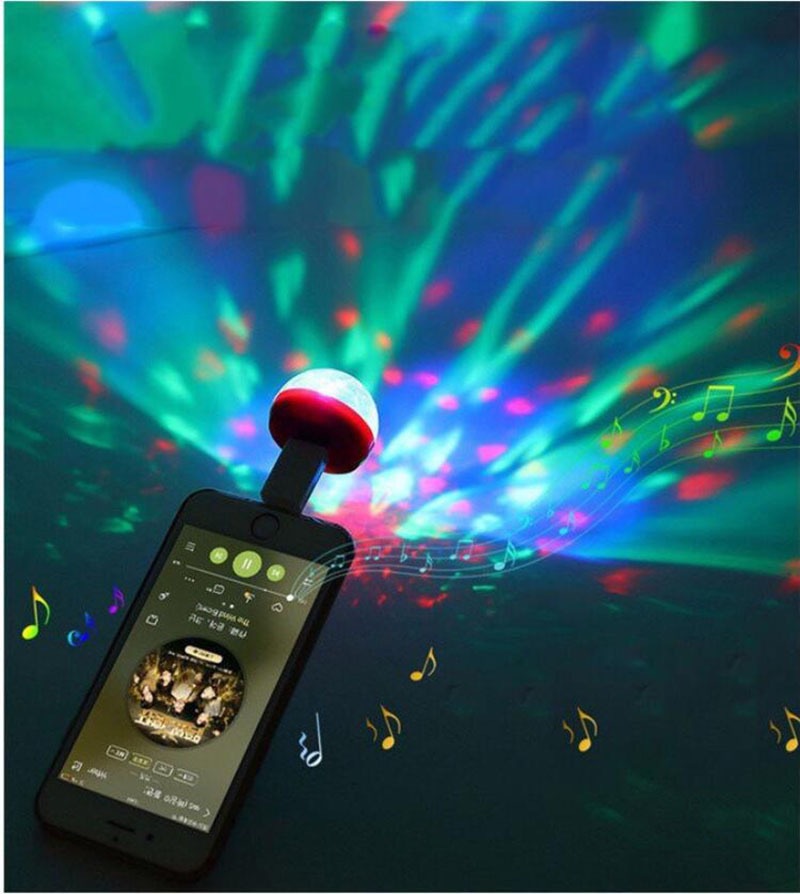 ミニ舞台ランプ音制御小魔球灯rgb携帯電話usb安卓リンゴ回転舞台ランプled