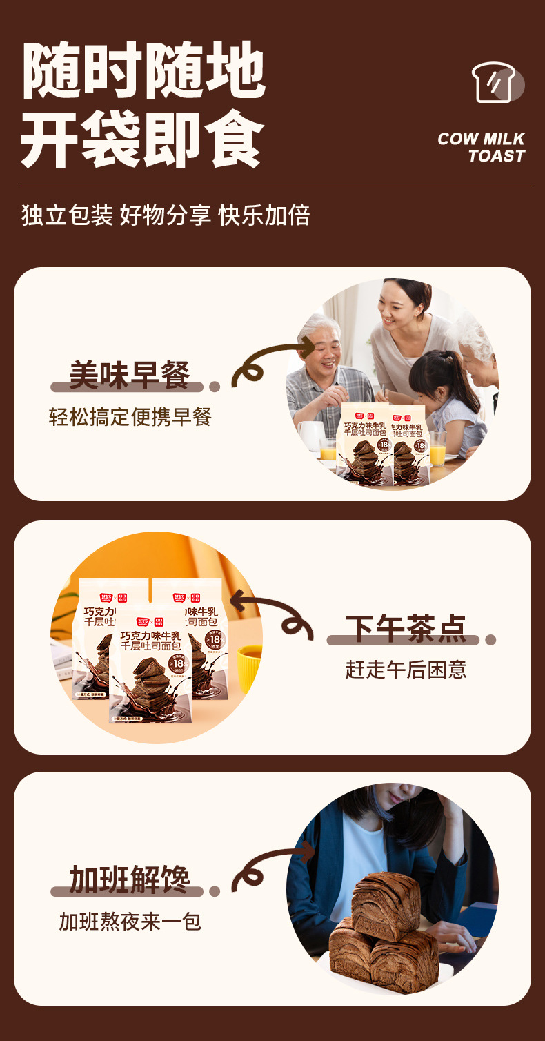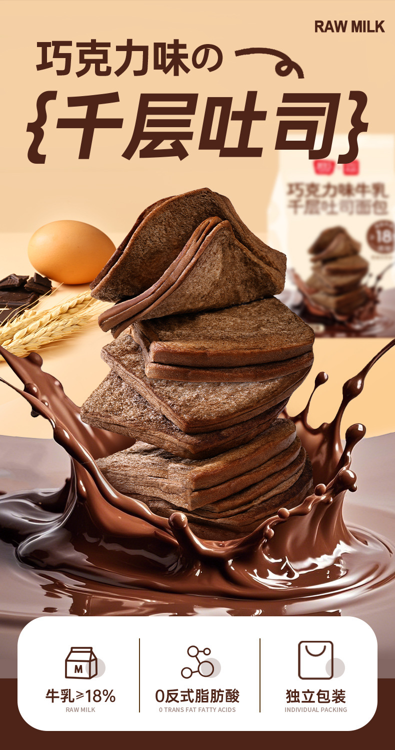 チョコレート牛乳千層トーストミルク香手裂きパン超ソフトパン栄養朝食バッグ寮買いだめスナック