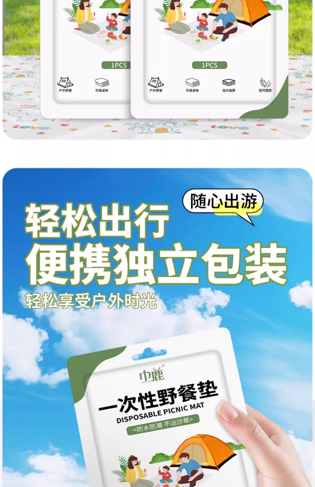 ポータブルアウトドアキャンプ使い捨てピクニックマット防湿マットシングルとダブル耐油ビーチマット芝生マット防水