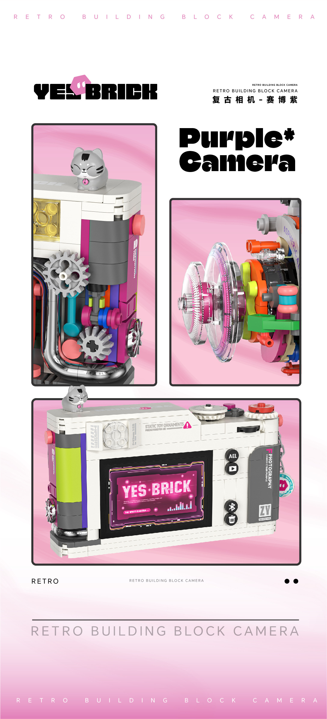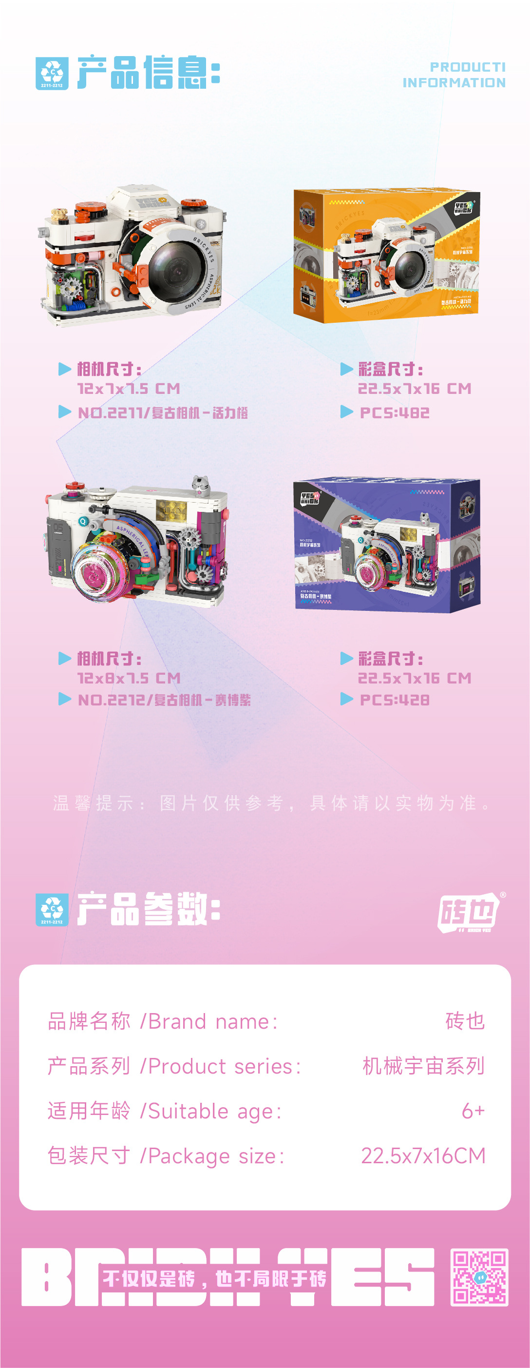 2211 レトロ カメラ - 鮮やかなオレンジ 482 粒子,2212 レトロ カメラ - サイバー パープル 428 パーティクル