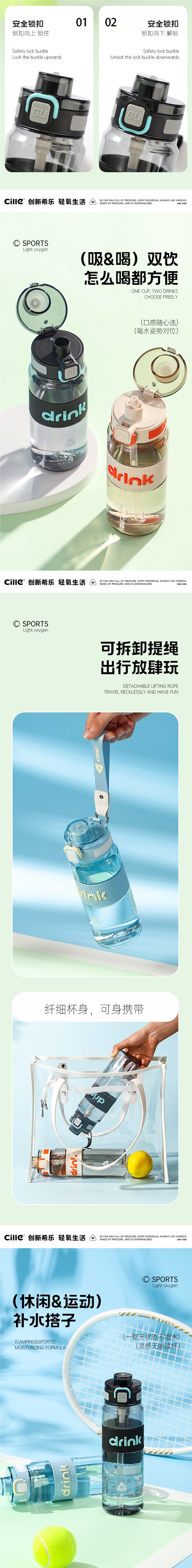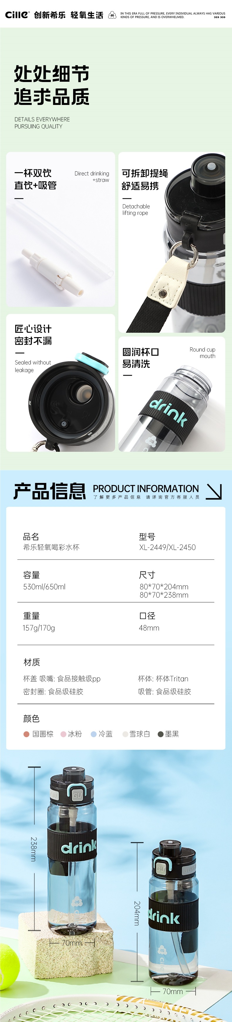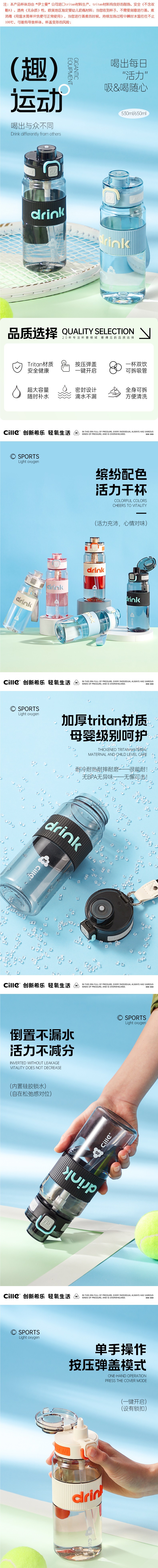 Xile tritan 学生スクールバッグウォーターカップ大容量ポータブル直接飲用落下防止スポーツ夏子供屋外耐熱