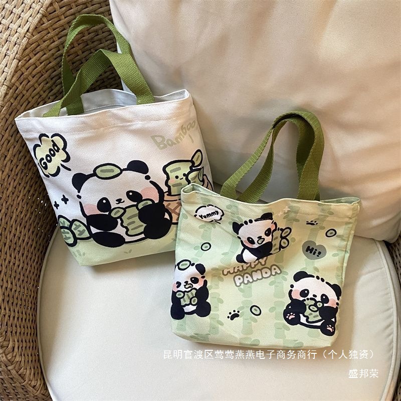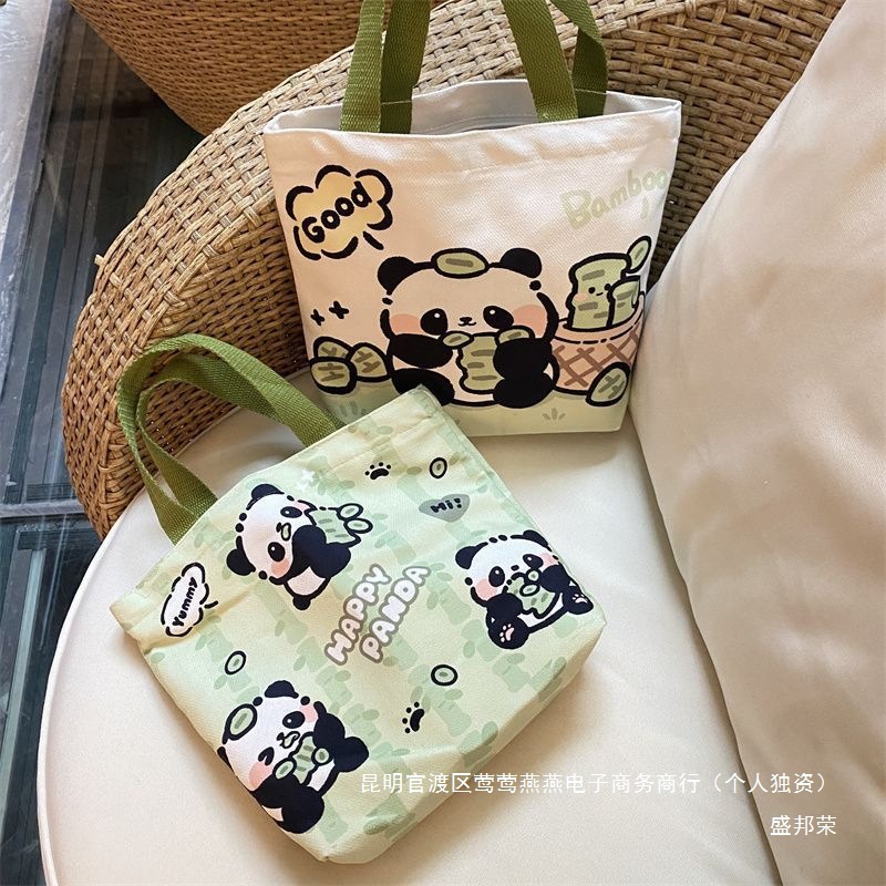 新型パンダ外出キャンバスバッグ弁当携帯ハンドバッグキャンバスバッグ学生バッグ通勤チャックバッグ