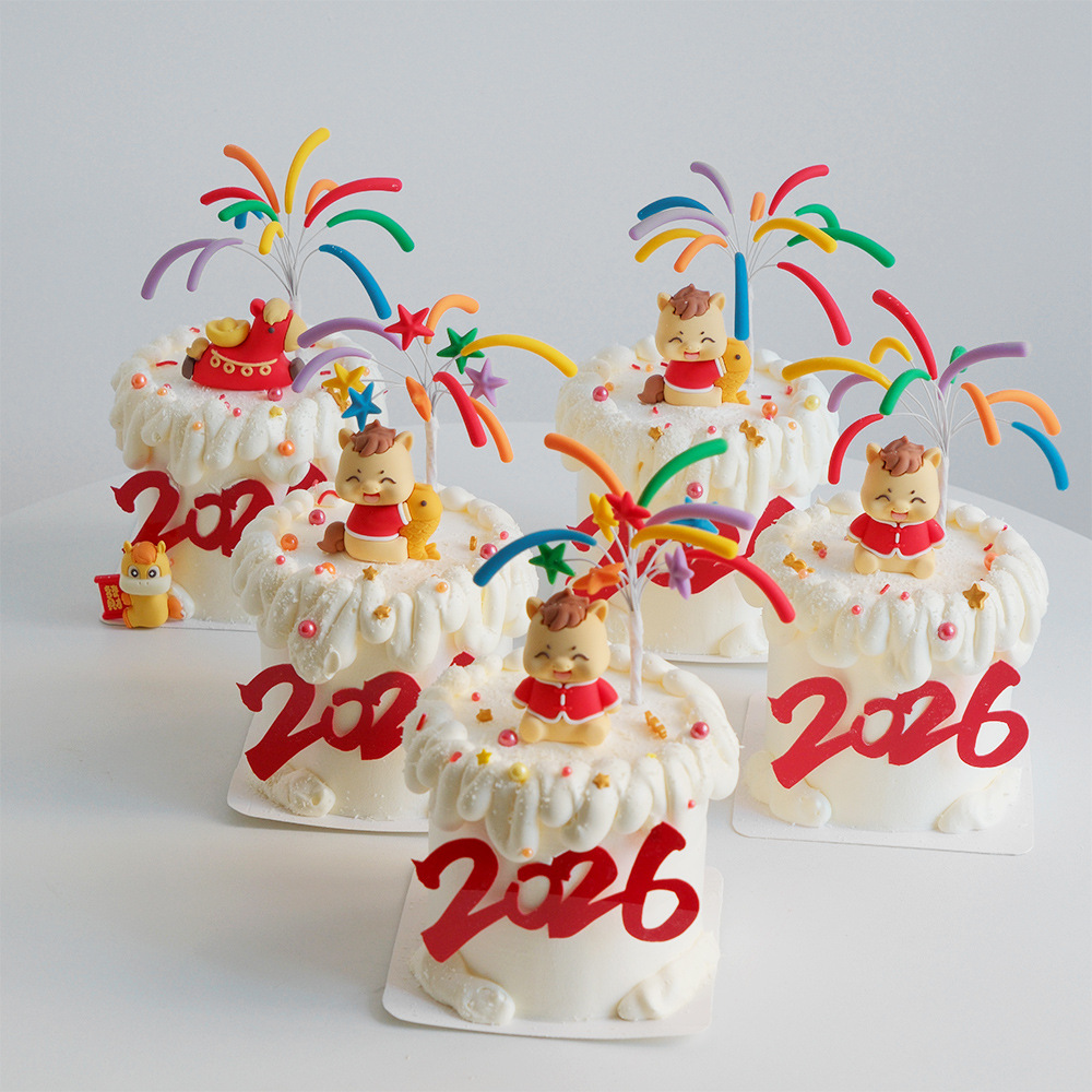 2026新年快乐贴纸蛋糕装饰马年跨年元旦春节礼花亚克力插牌插件