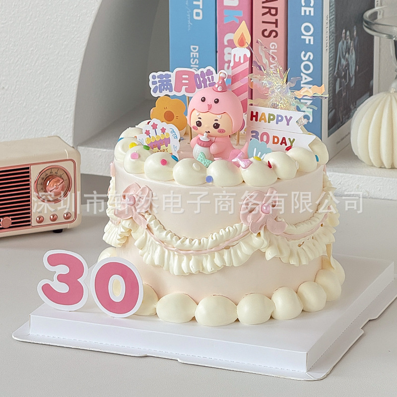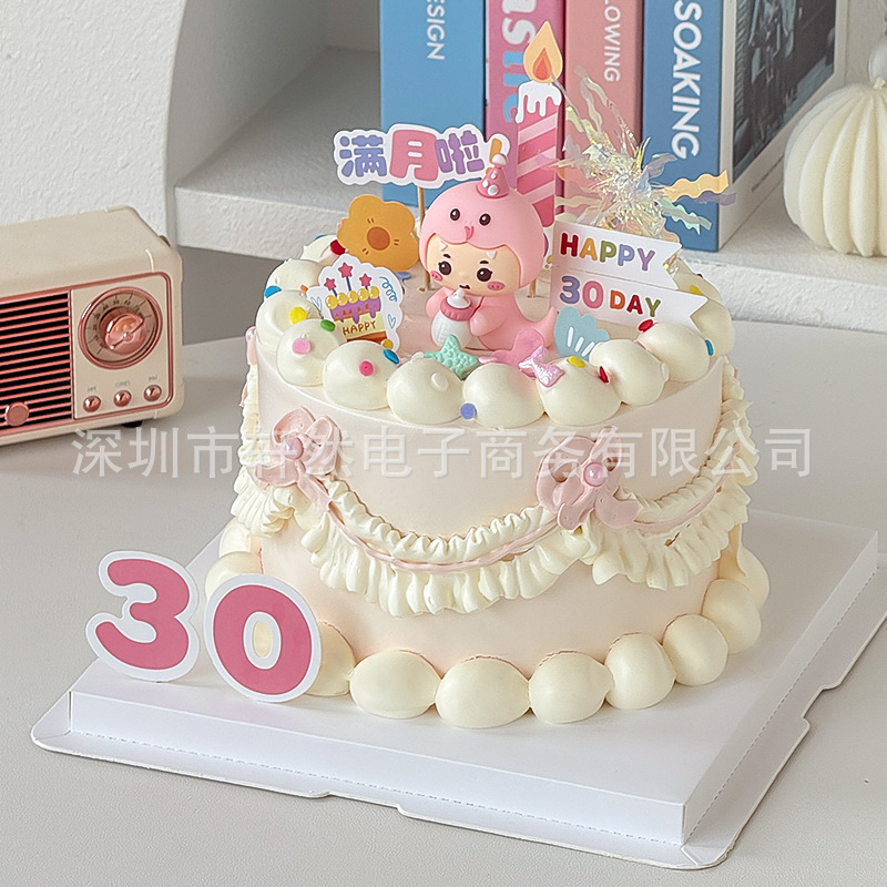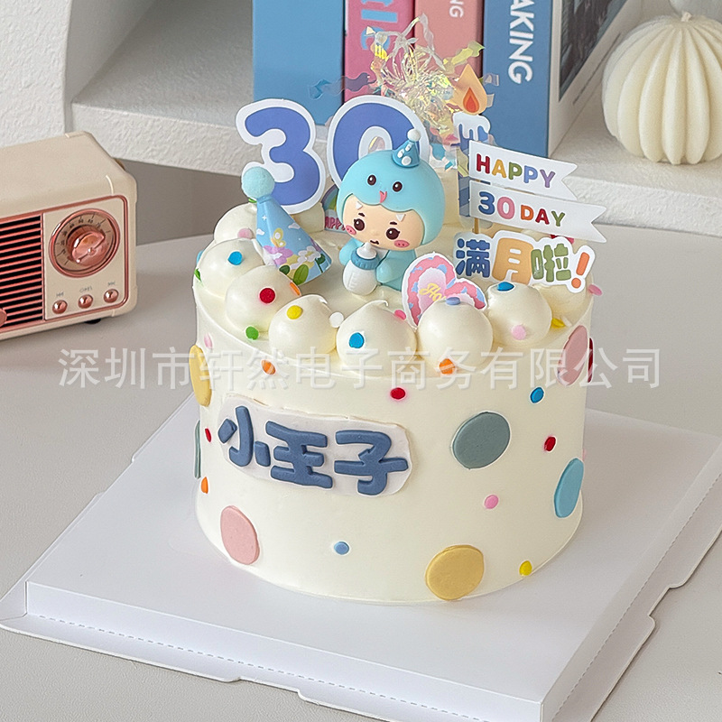 ソフトクリーム青蛇赤ちゃん満月百日ケーキ装飾男女の子生肖蛇30日デザート台焙煎プラグイン