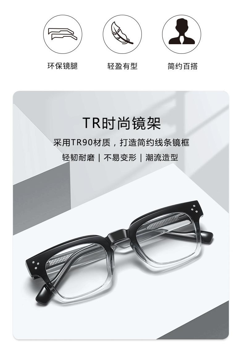 LS244欧美男士TR90防蓝光眼镜跨境新品时尚个性方框平光镜架现货