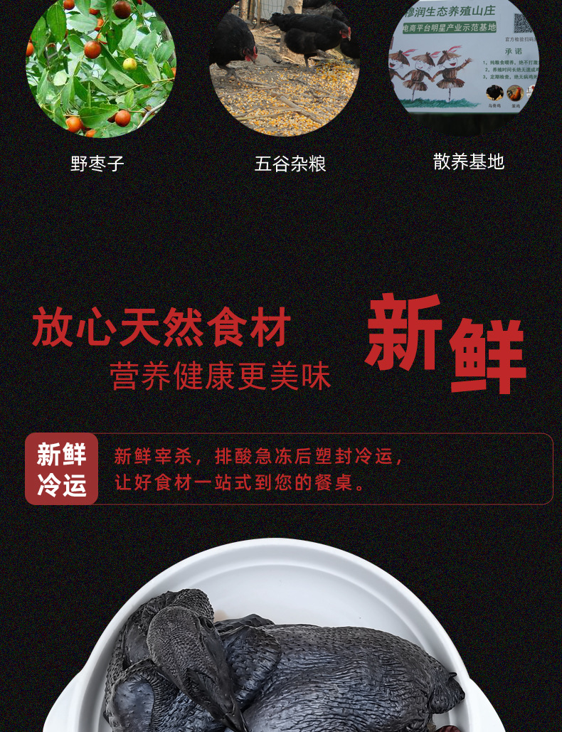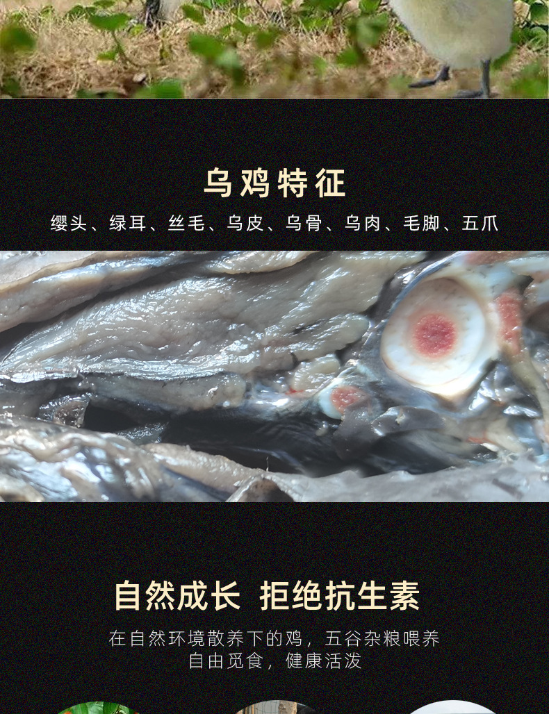 生きた黒鶏、屠殺したての地鶏、黒骨鶏、五黒鶏、本場農場の放し飼い鶏、田舎の産後鶏