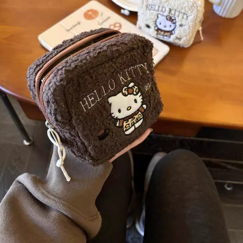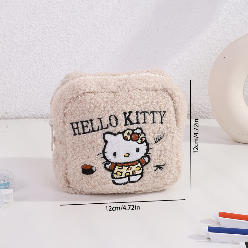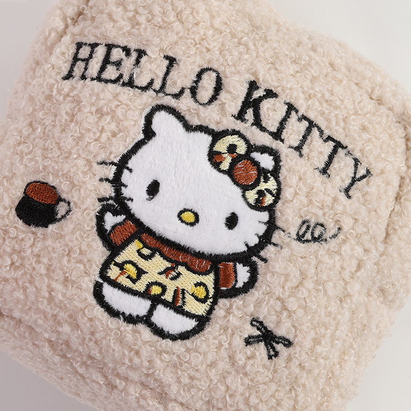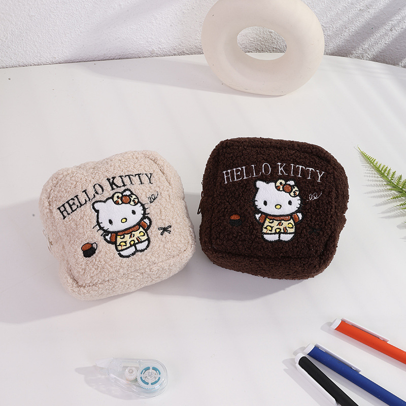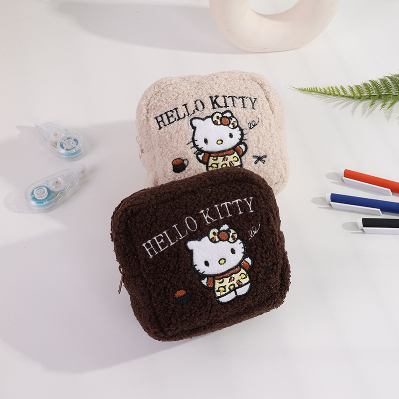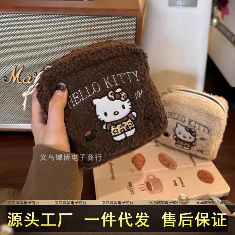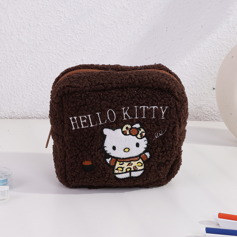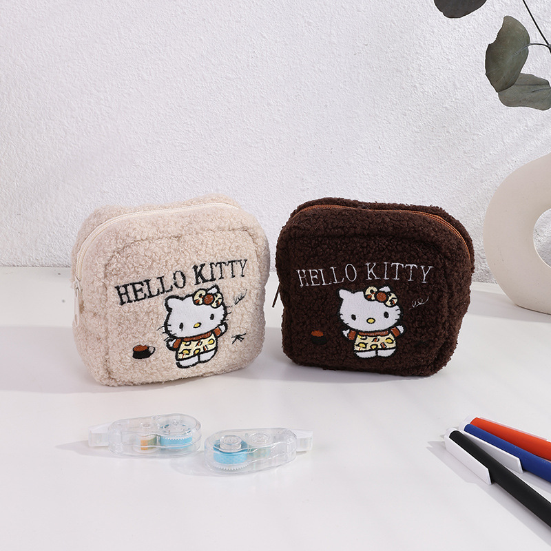 可爱刺绣KT猫毛绒化妆包女随身便携拍立得收纳包姨妈巾杂物零钱包