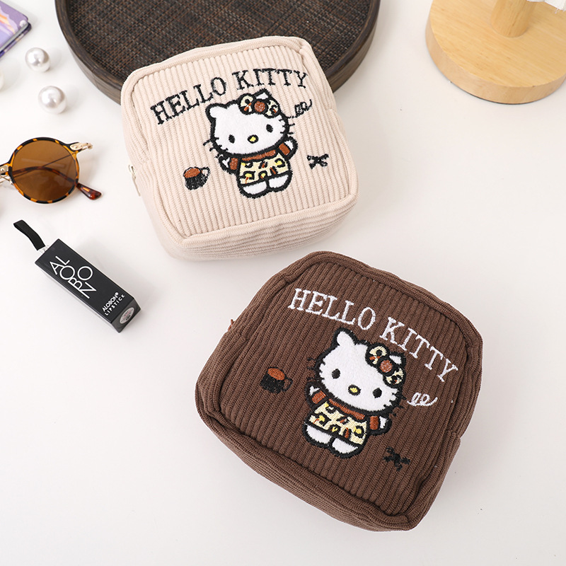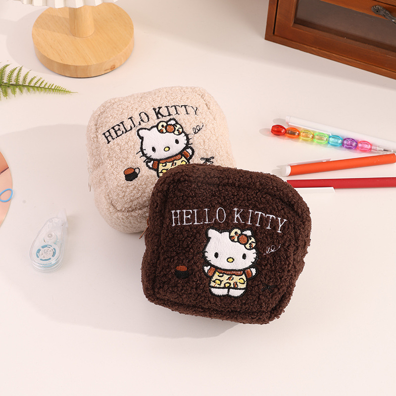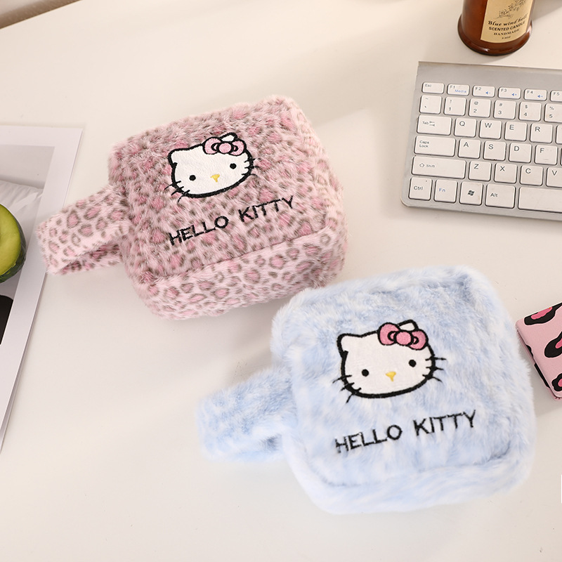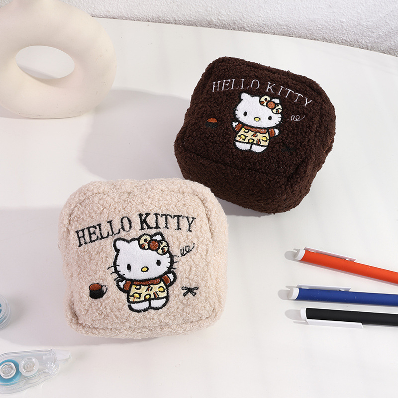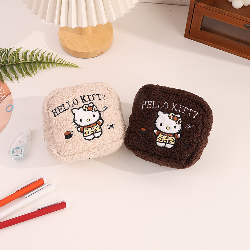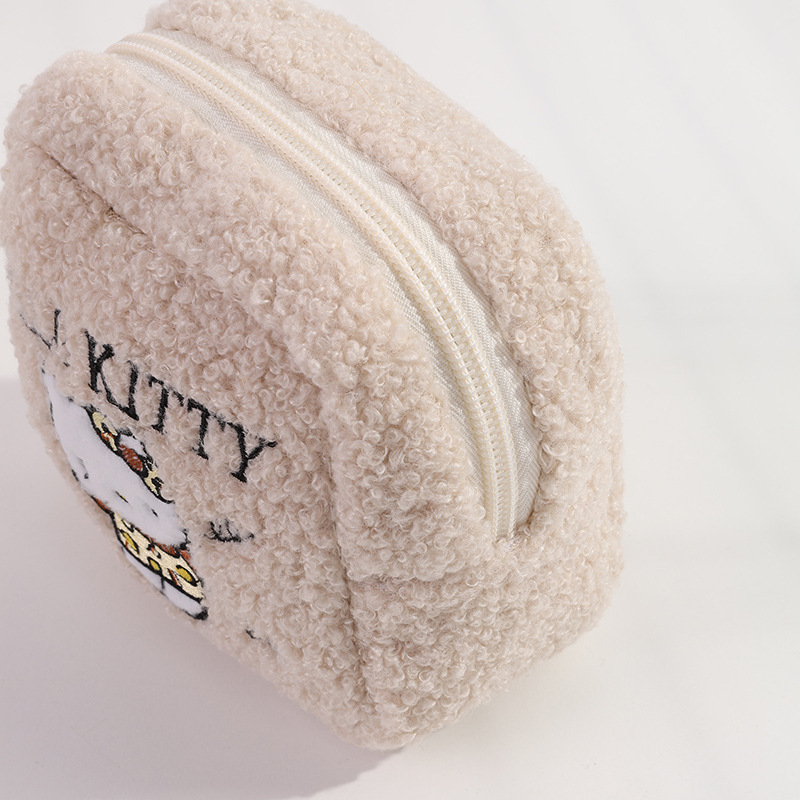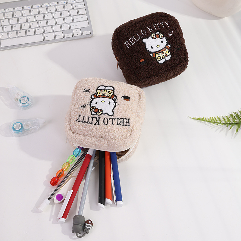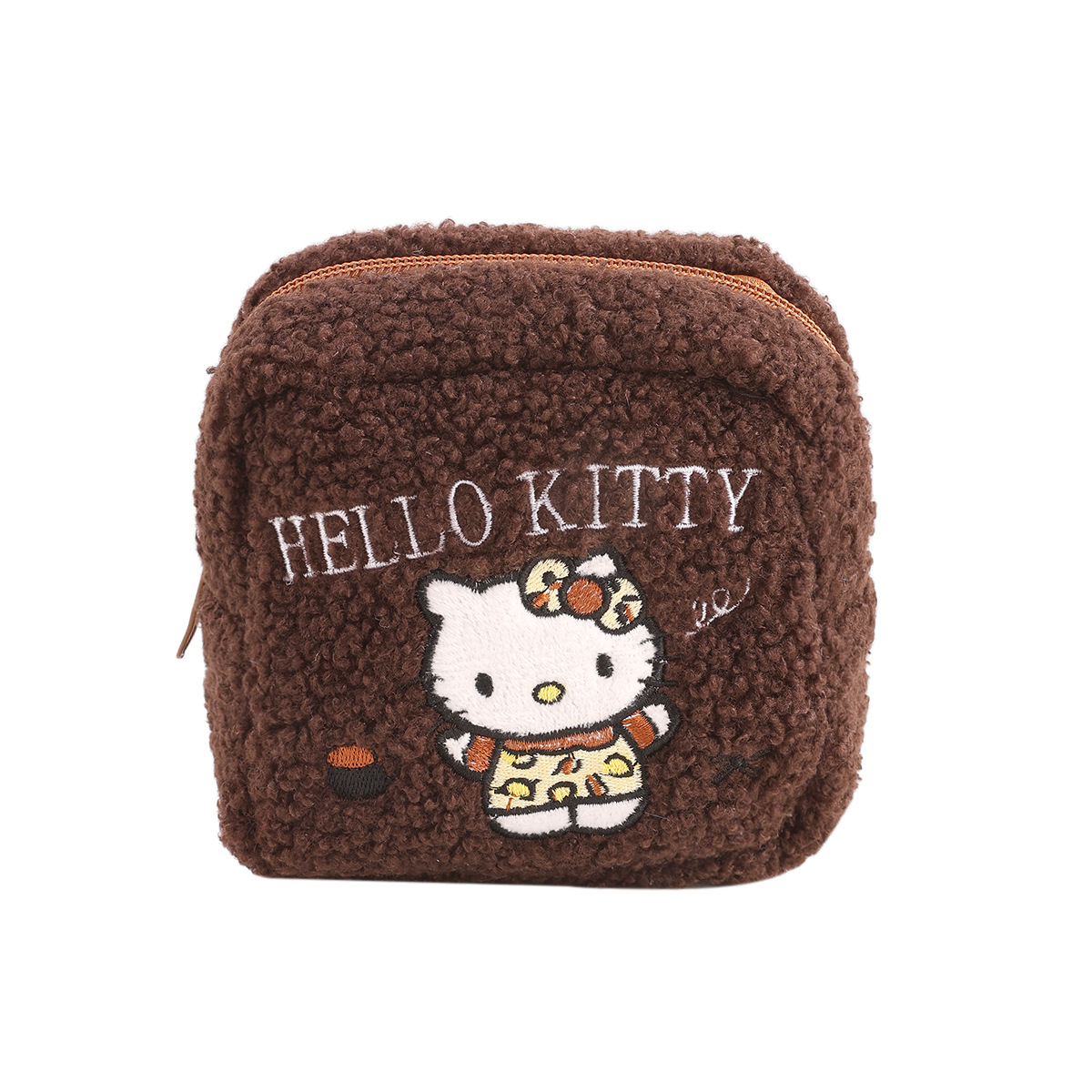可爱刺绣KT猫毛绒化妆包女随身便携拍立得收纳包姨妈巾杂物零钱包