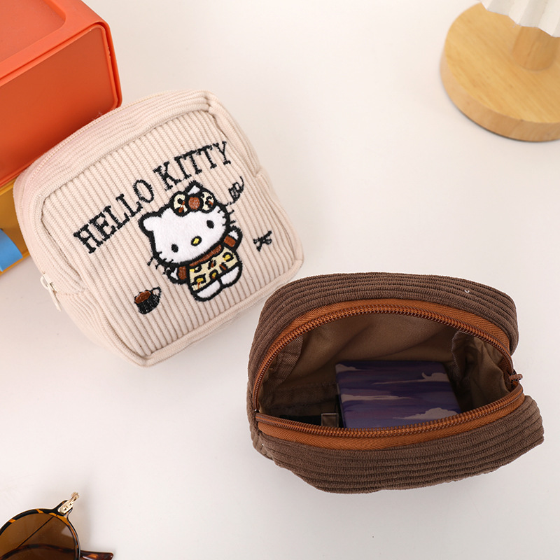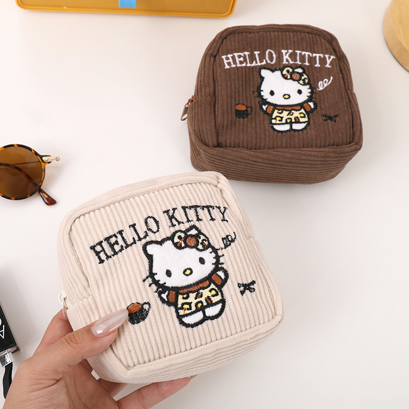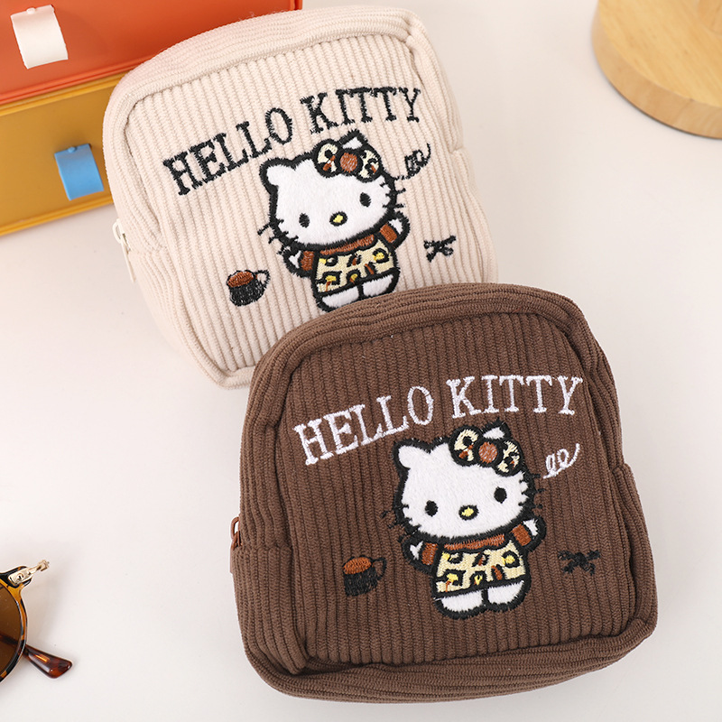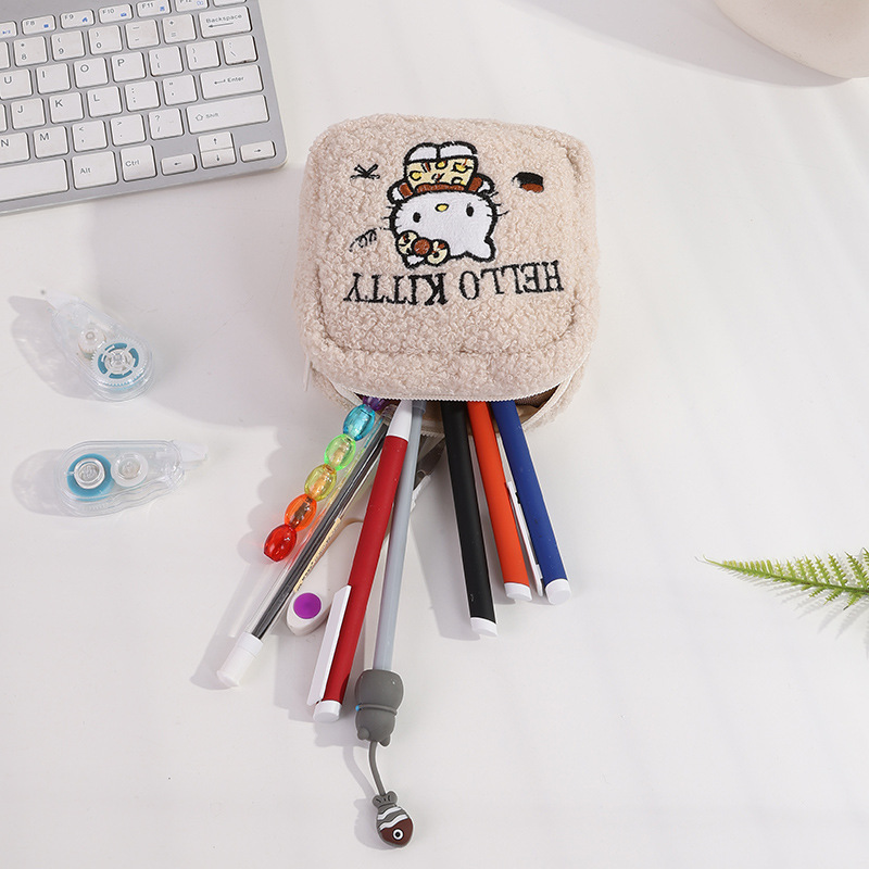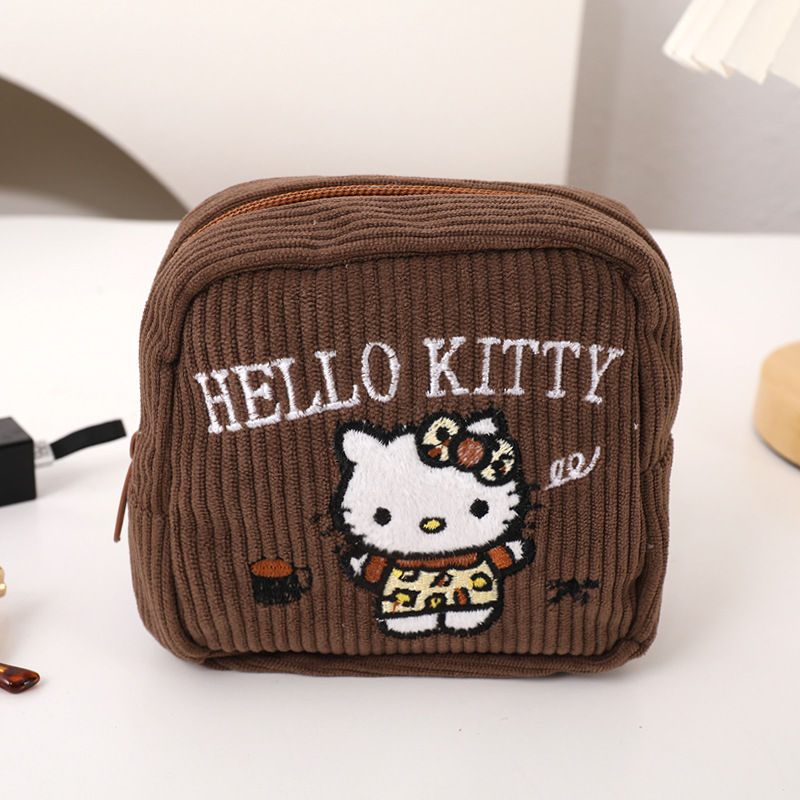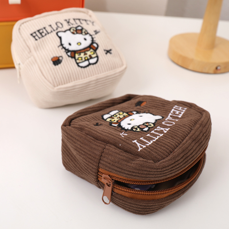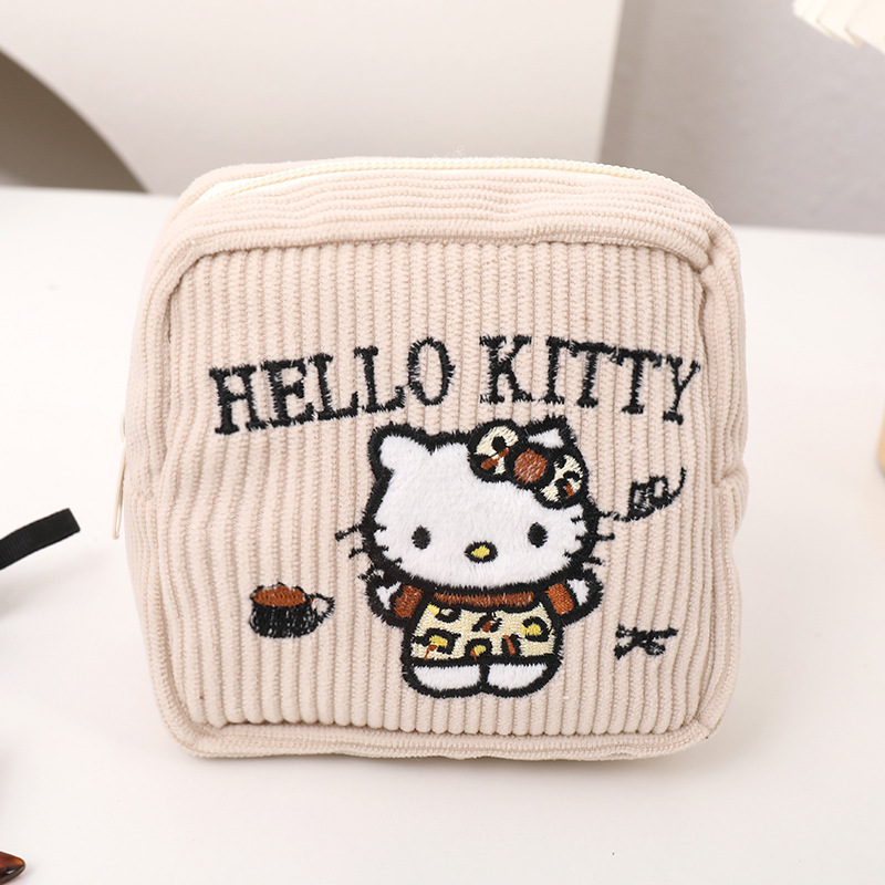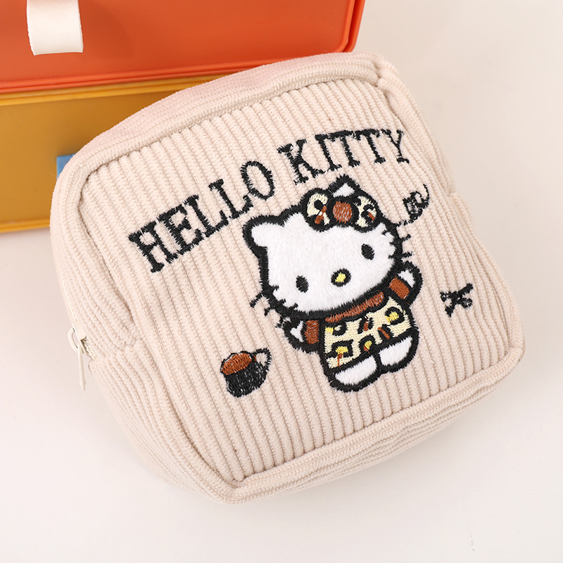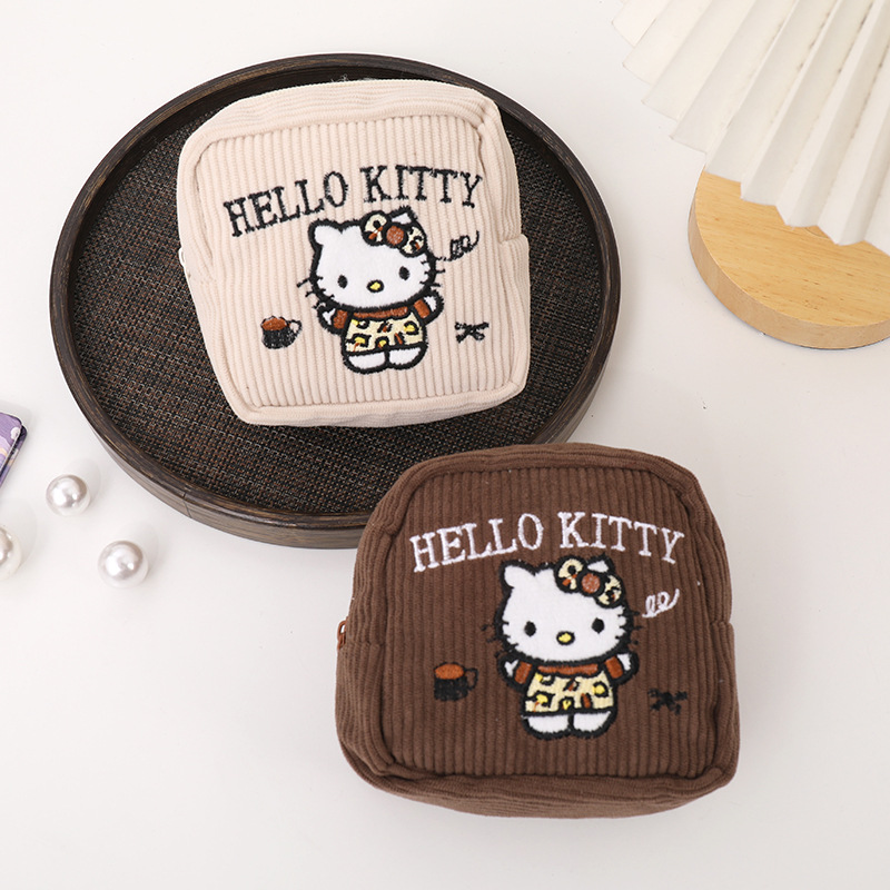 可爱刺绣KT猫毛绒化妆包女随身便携拍立得收纳包姨妈巾杂物零钱包