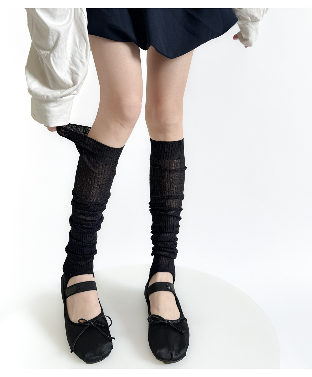 春夏新品ins潮縦紋個性足踏み靴下カバーバレエ風純色シンプル百合韓版山積み脚カバー