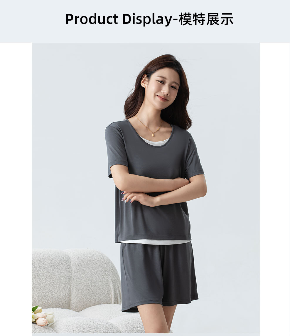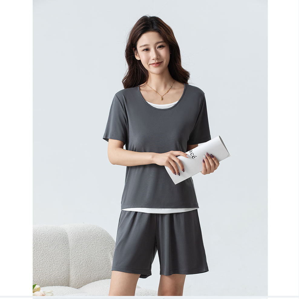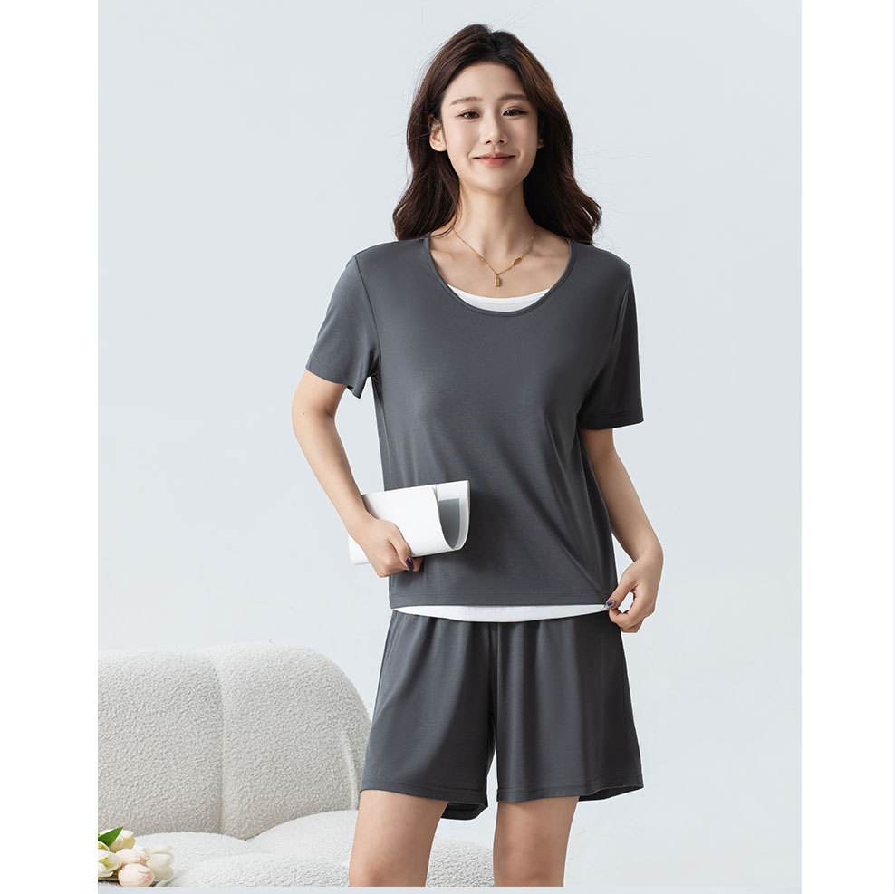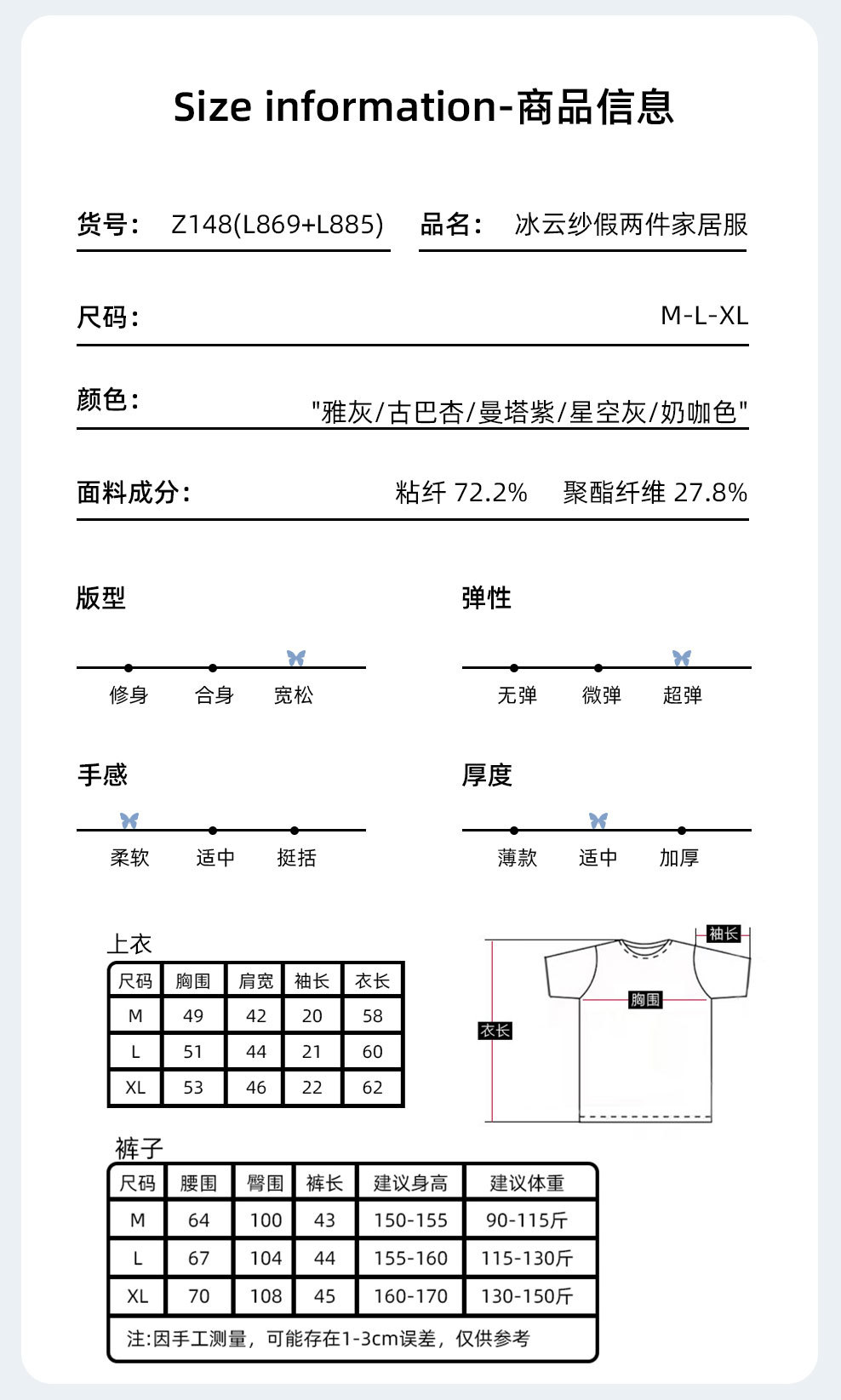 氷雲紗パジャマ女性用固定カップ偽の裾に丸みを帯びたパンツセットZ148