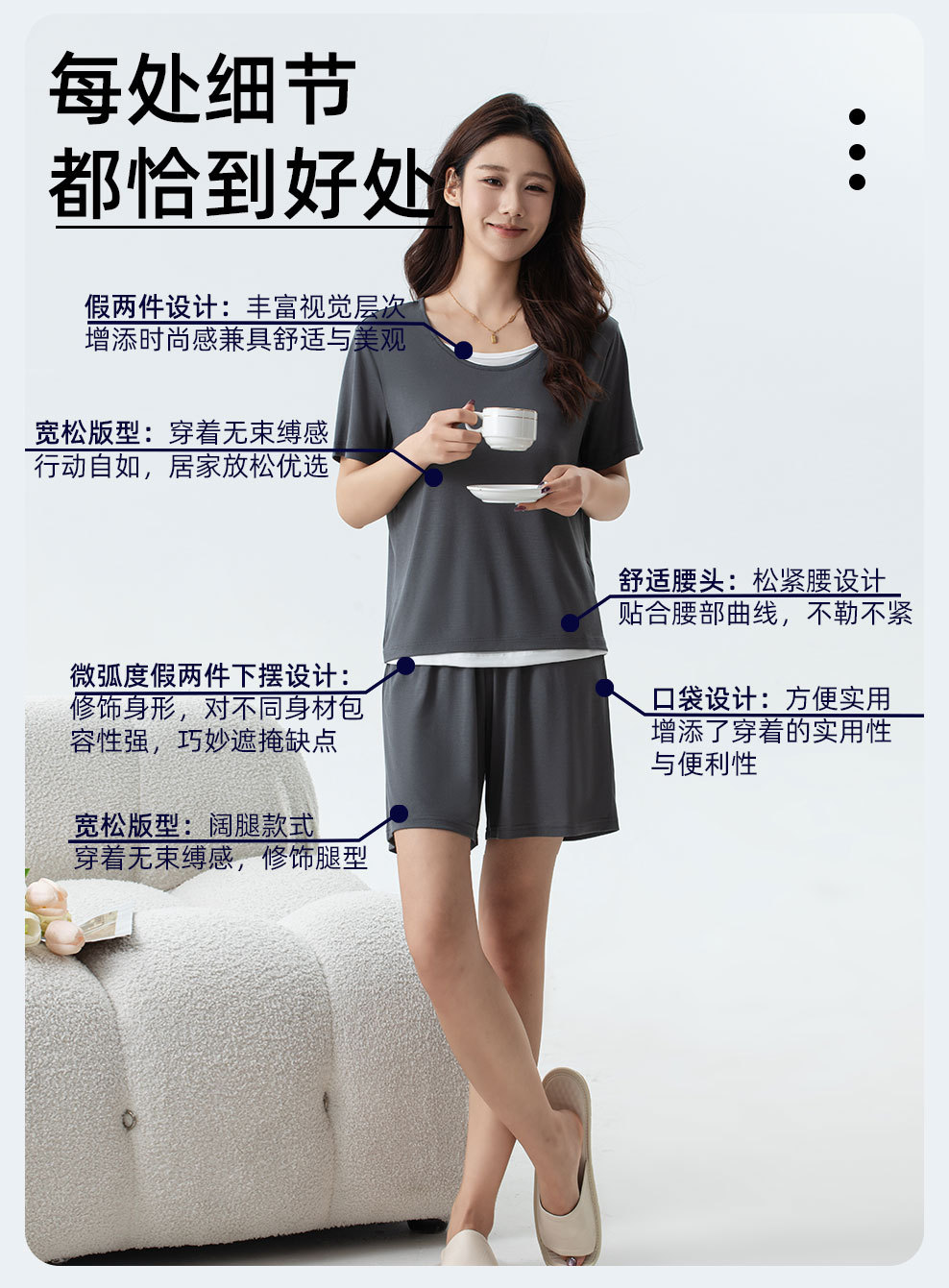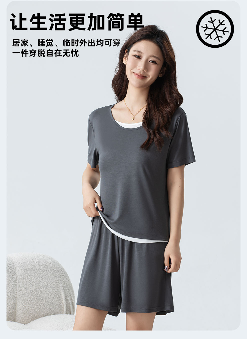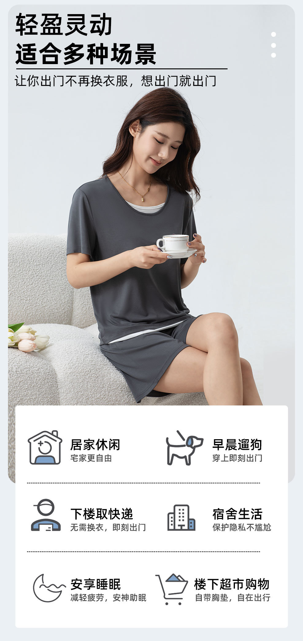 氷雲紗パジャマ女性用固定カップ偽の裾に丸みを帯びたパンツセットZ148