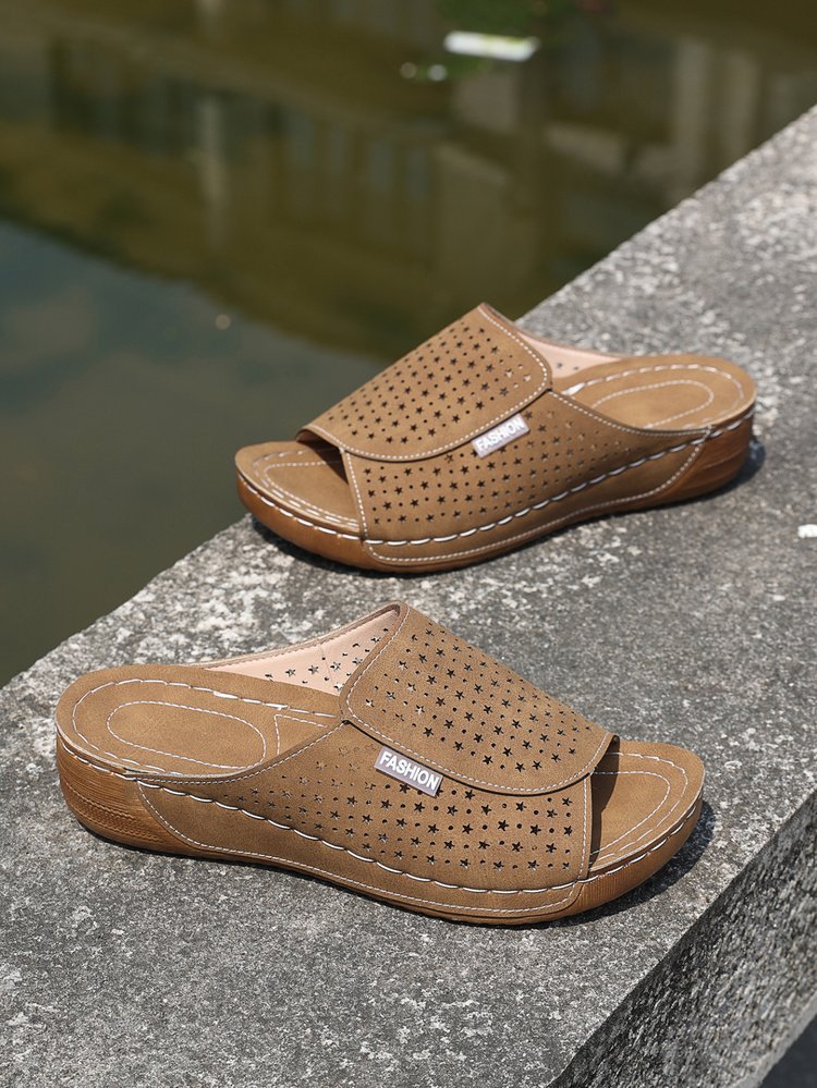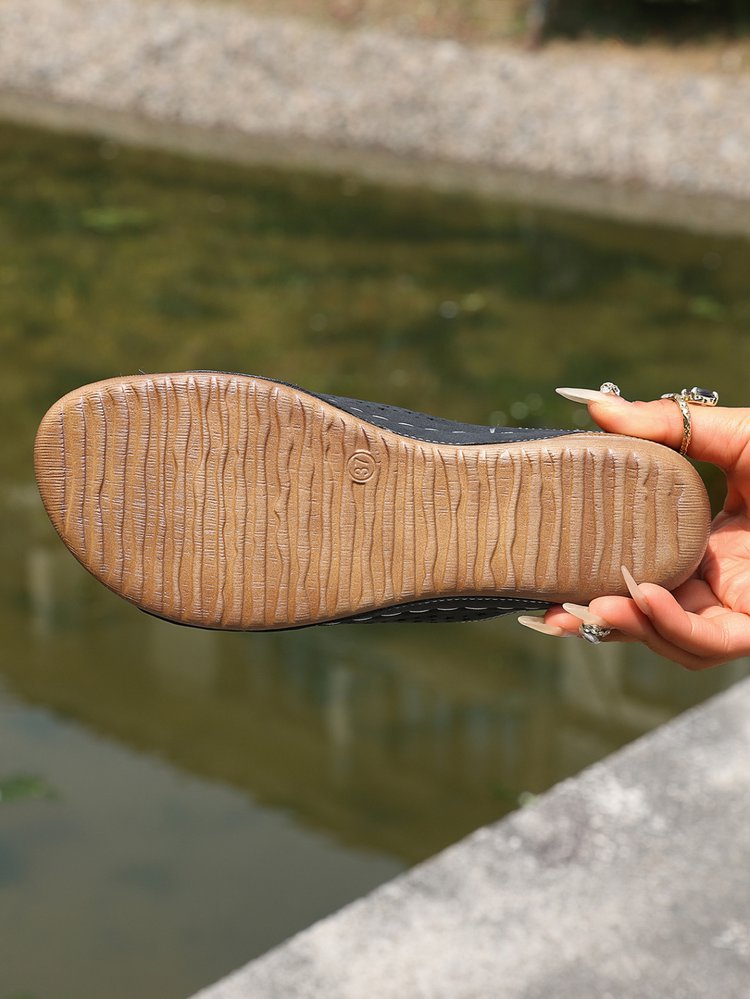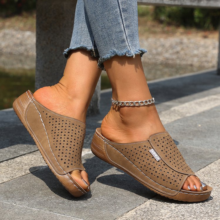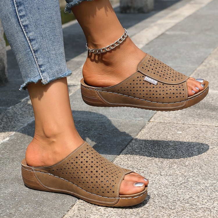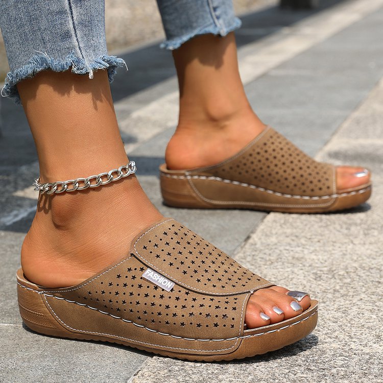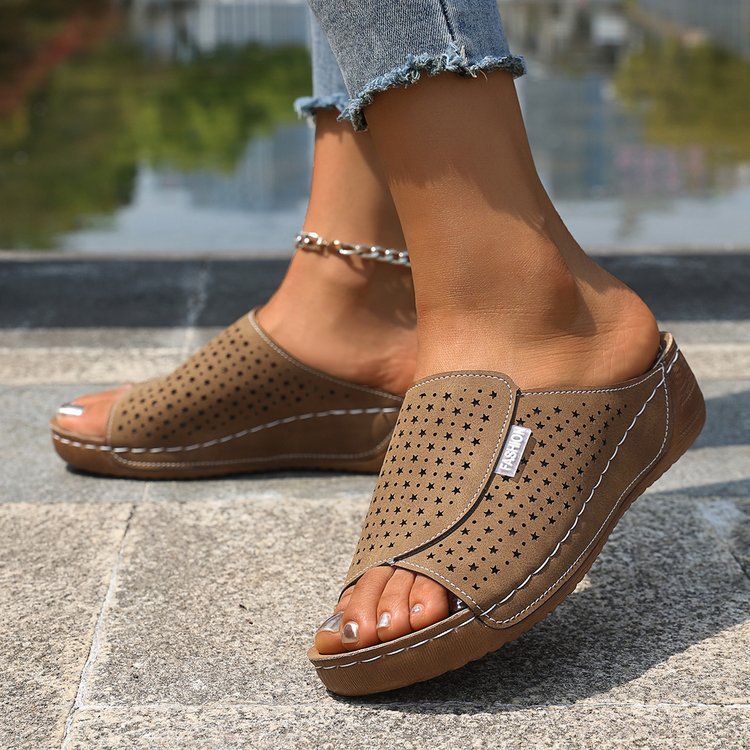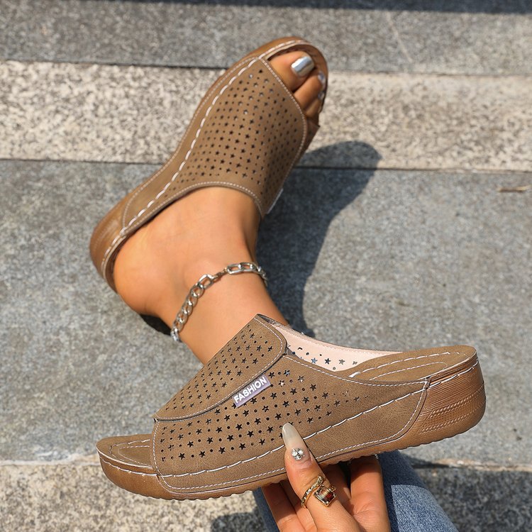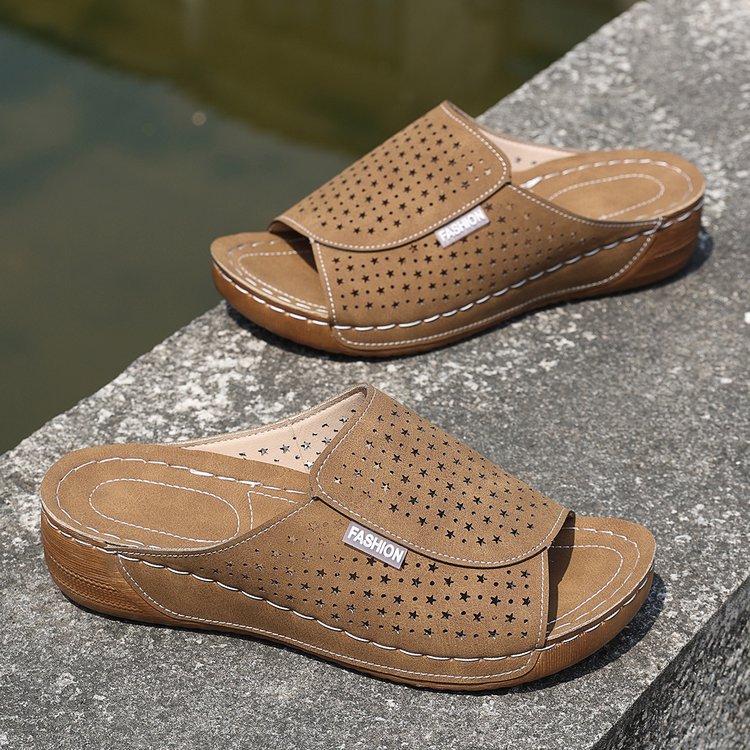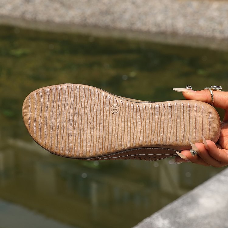 クロスボーダー夏の新しい対外貿易大きいサイズラウンドトゥレトロソリッドカラーの女性のサンダル中空縫製ライン大きいサイズのサンダル女性用