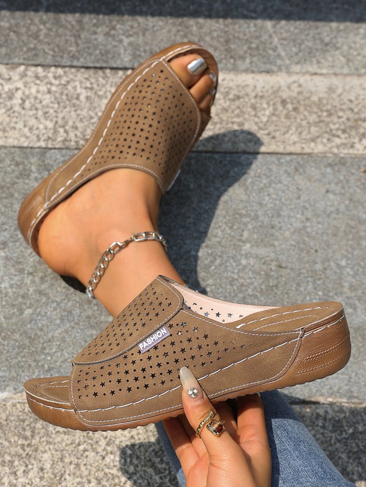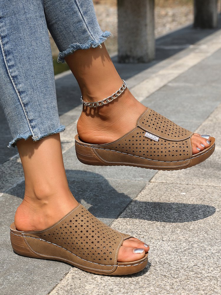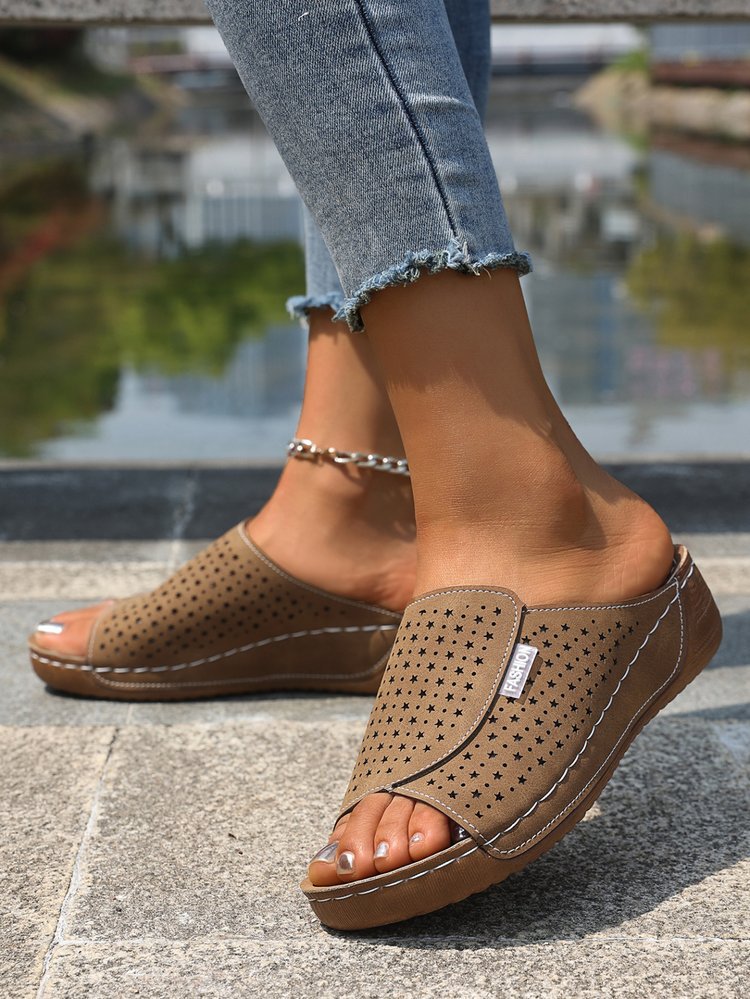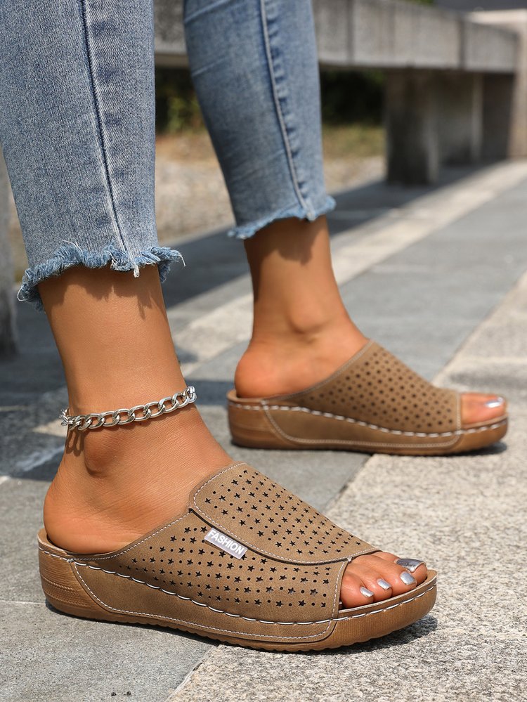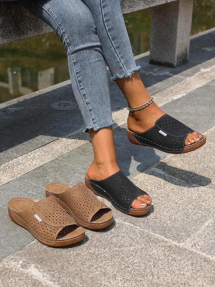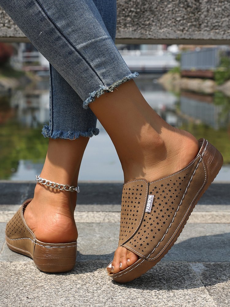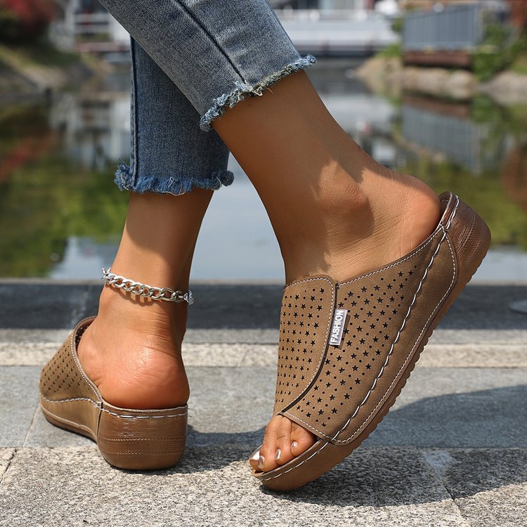 クロスボーダー夏の新しい対外貿易大きいサイズラウンドトゥレトロソリッドカラーの女性のサンダル中空縫製ライン大きいサイズのサンダル女性用