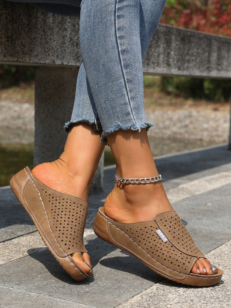 春夏新作 レディース シングルシューズ ウェッジソール ラウンドトゥ スリッポン ローファー ミドルヒール 浅口 ママシューズ トレンド 卸売 通気性