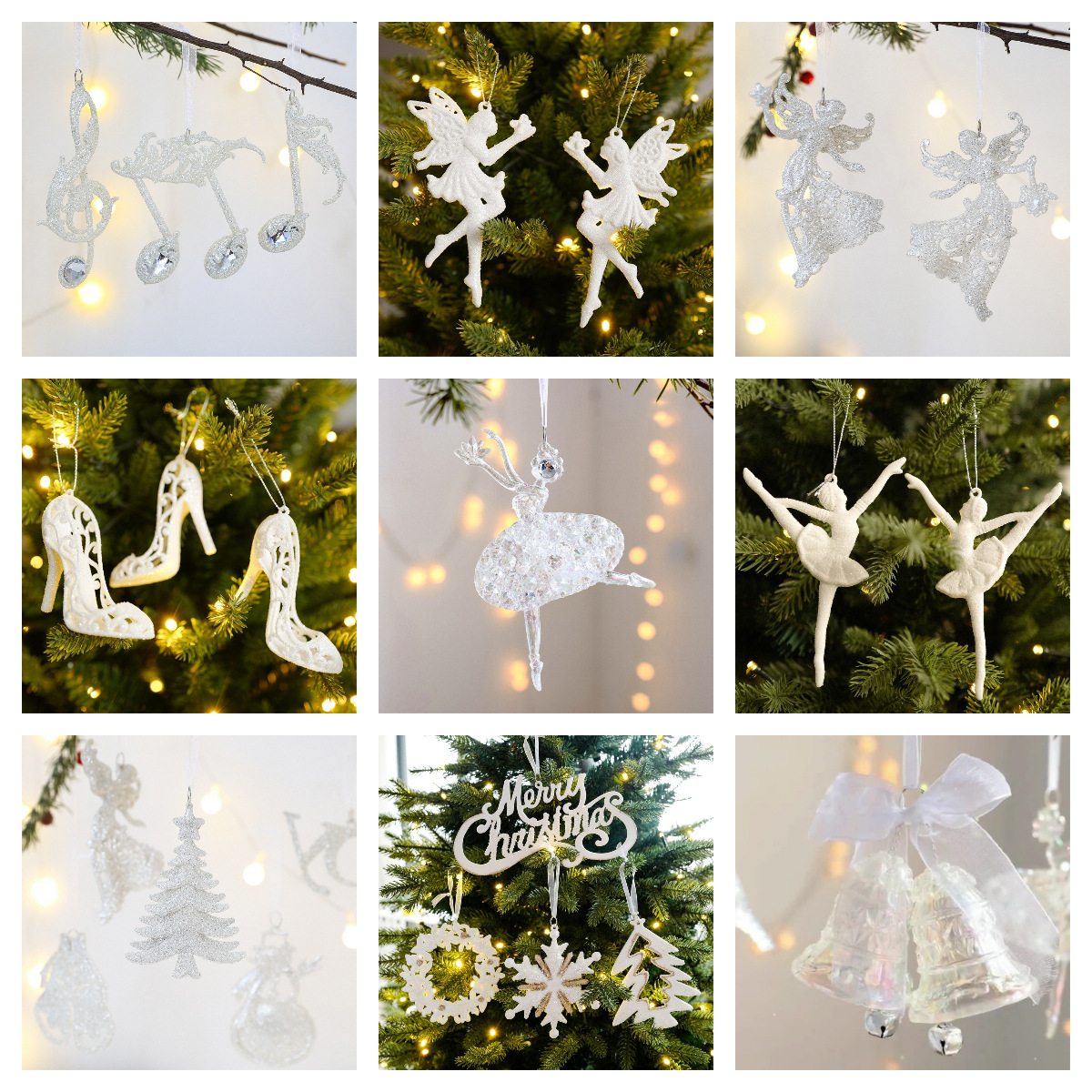 クリスマス装飾ハイヒールスノーフレークフェザーウィングエンジェルミニ植毛クリスマスペンダントホワイトペンダント
