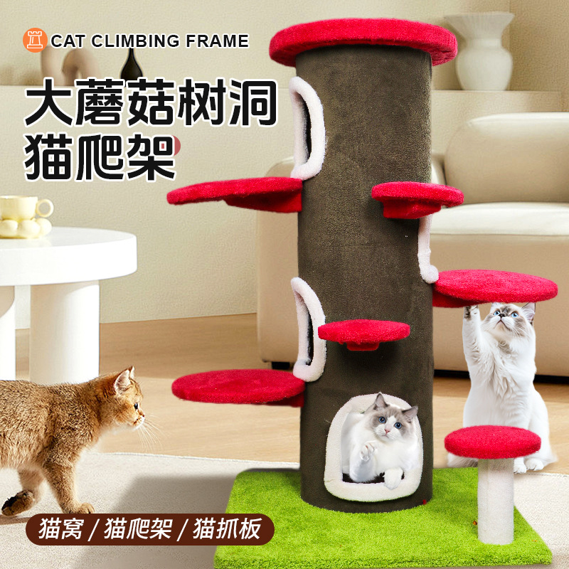 メーカー卸売巨大キノコ猫クライミングフレームキノコパイル猫の巣無垢材一体型猫ジャンプ台猫の巣おもちゃ家族