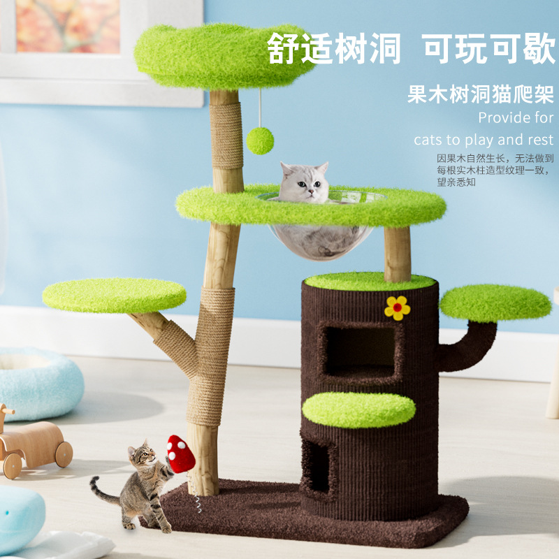 猫クライミングフレーム無垢材猫ツリー占有子猫の巣統合天然果実木材サイザル麻柱大きな猫特別な国境を越えた卸売
