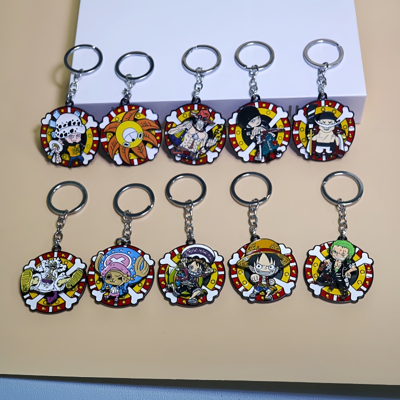 アニメのワンピースのキーホルダールフィの麦わら帽子の索隆の喬巴の金属の掛け物のかばんは装飾を掛けて新型を回転することができます。